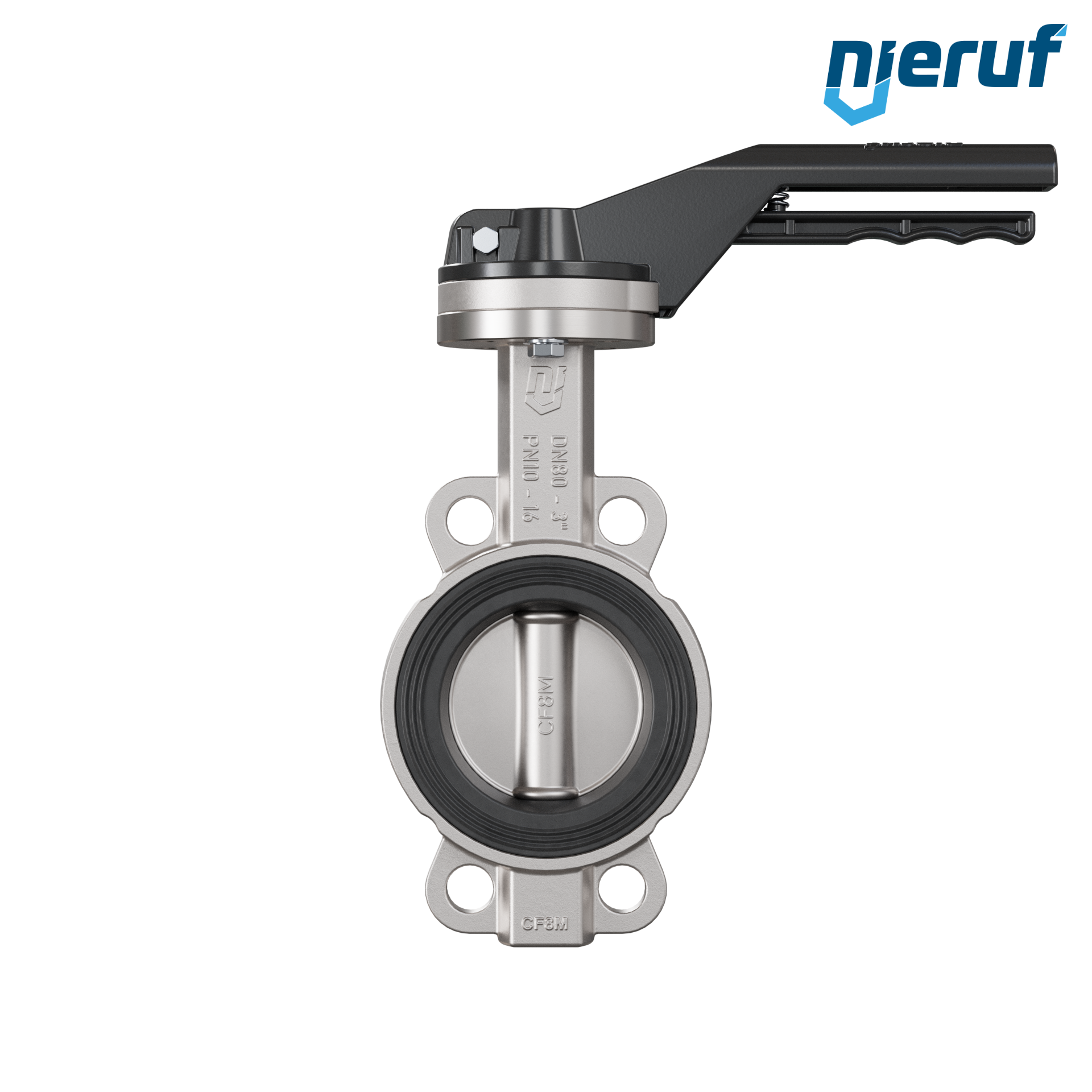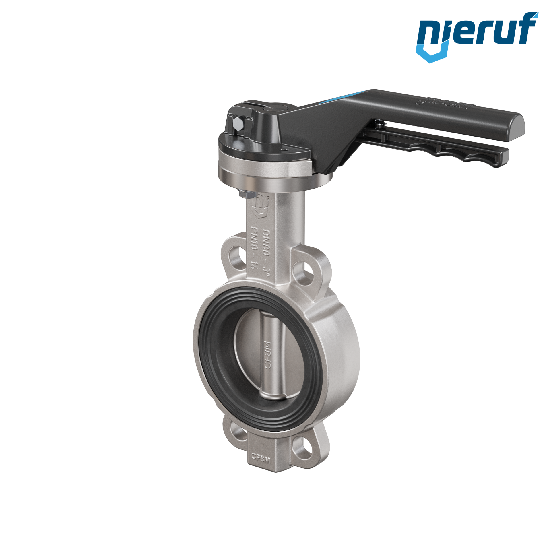 stainless-steel butterfly valve DN 80 PN16 Wafer type body made of stainless-steel 1.4408 with notch lever seal made of EPDM