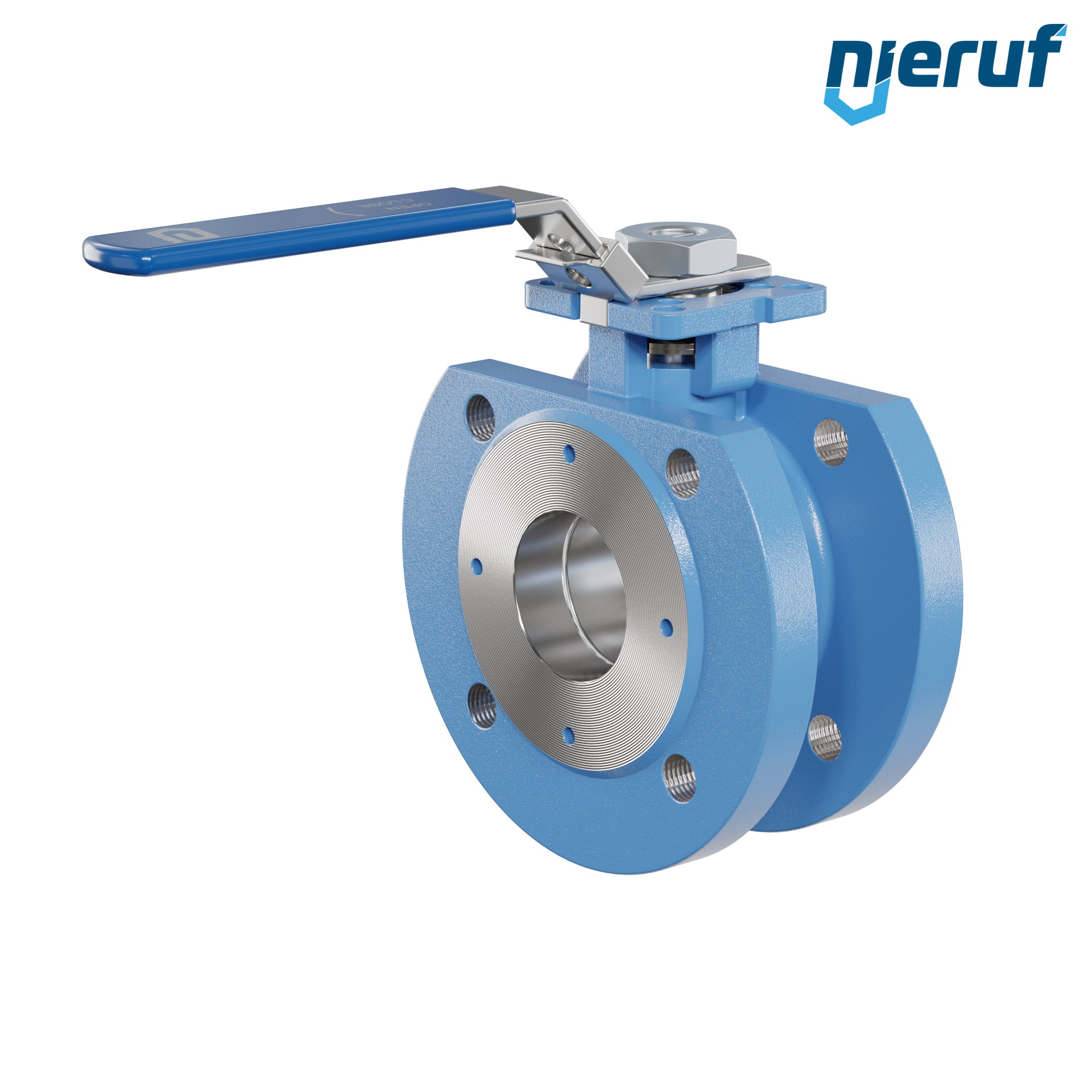 This high quality steel ball valve in the compact version consists of a 1-piece body with screw-in part. Full bore, ISO 5211 mounting flange and flange connection on both sides in accordance with EN 1092-1.