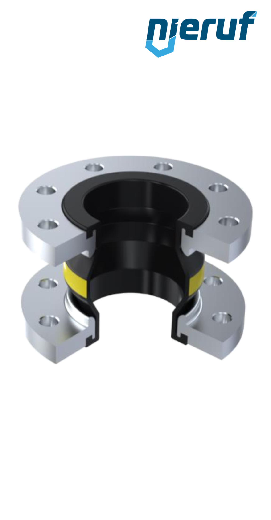product feature | High quality compensator with NBR sleeve and stainless steel flanges. This type can be extended by PTFE lining, vacuum support rings and other options on request. |