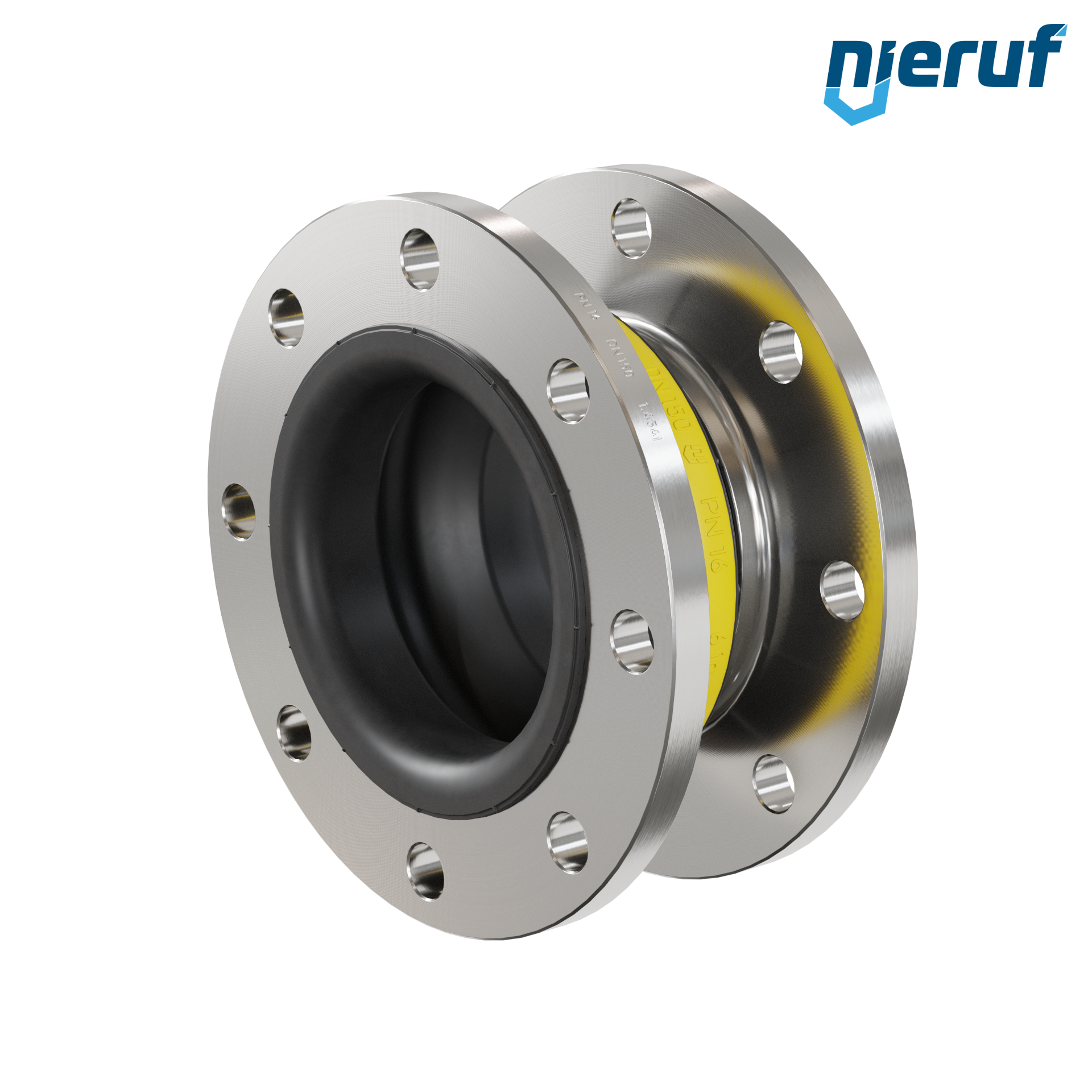 High quality compensator with NBR sleeve and stainless steel flanges. This type can be extended by PTFE lining, vacuum support rings and other options on request.