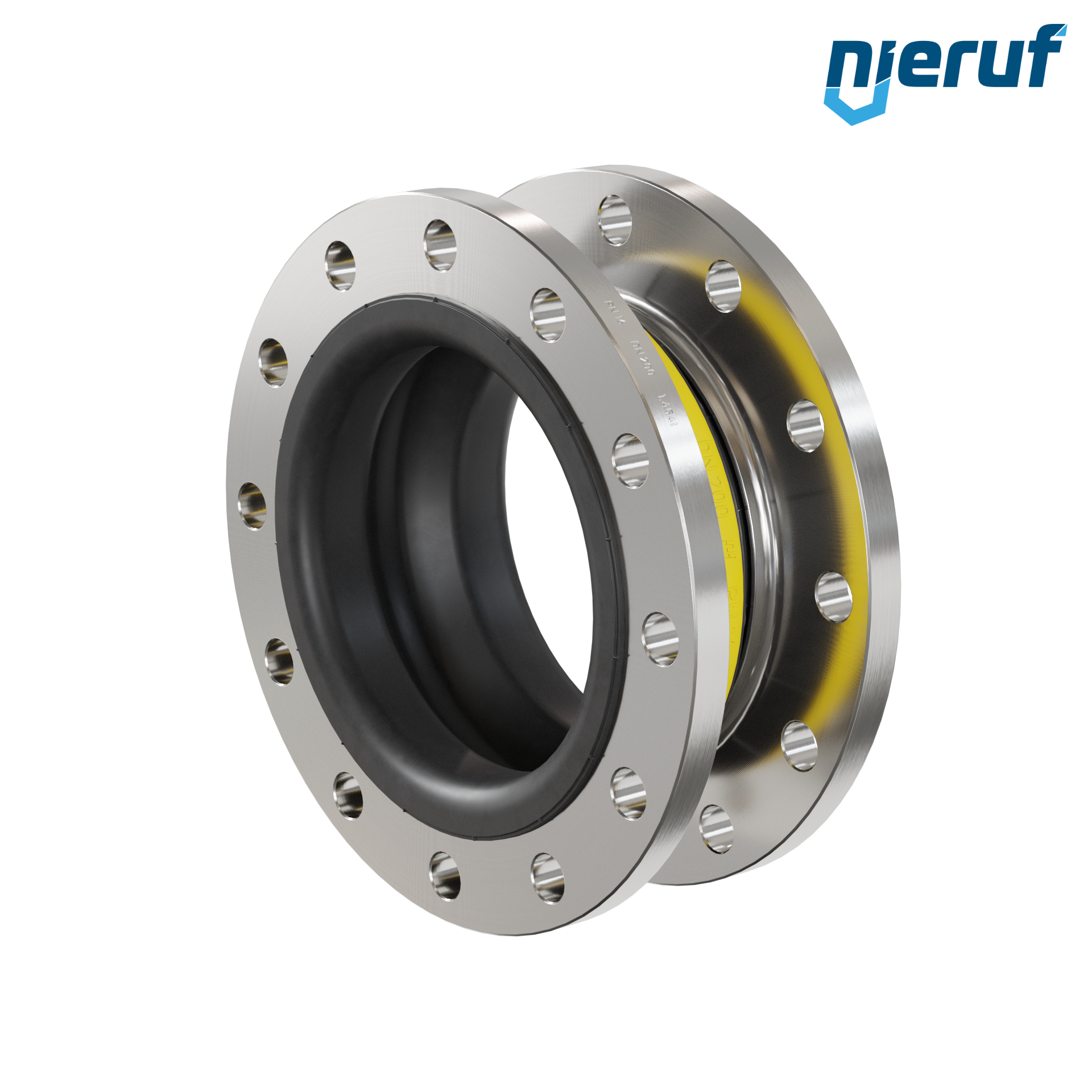 High quality compensator with NBR sleeve and stainless steel flanges. This type can be extended by PTFE lining, vacuum support rings and other options on request.