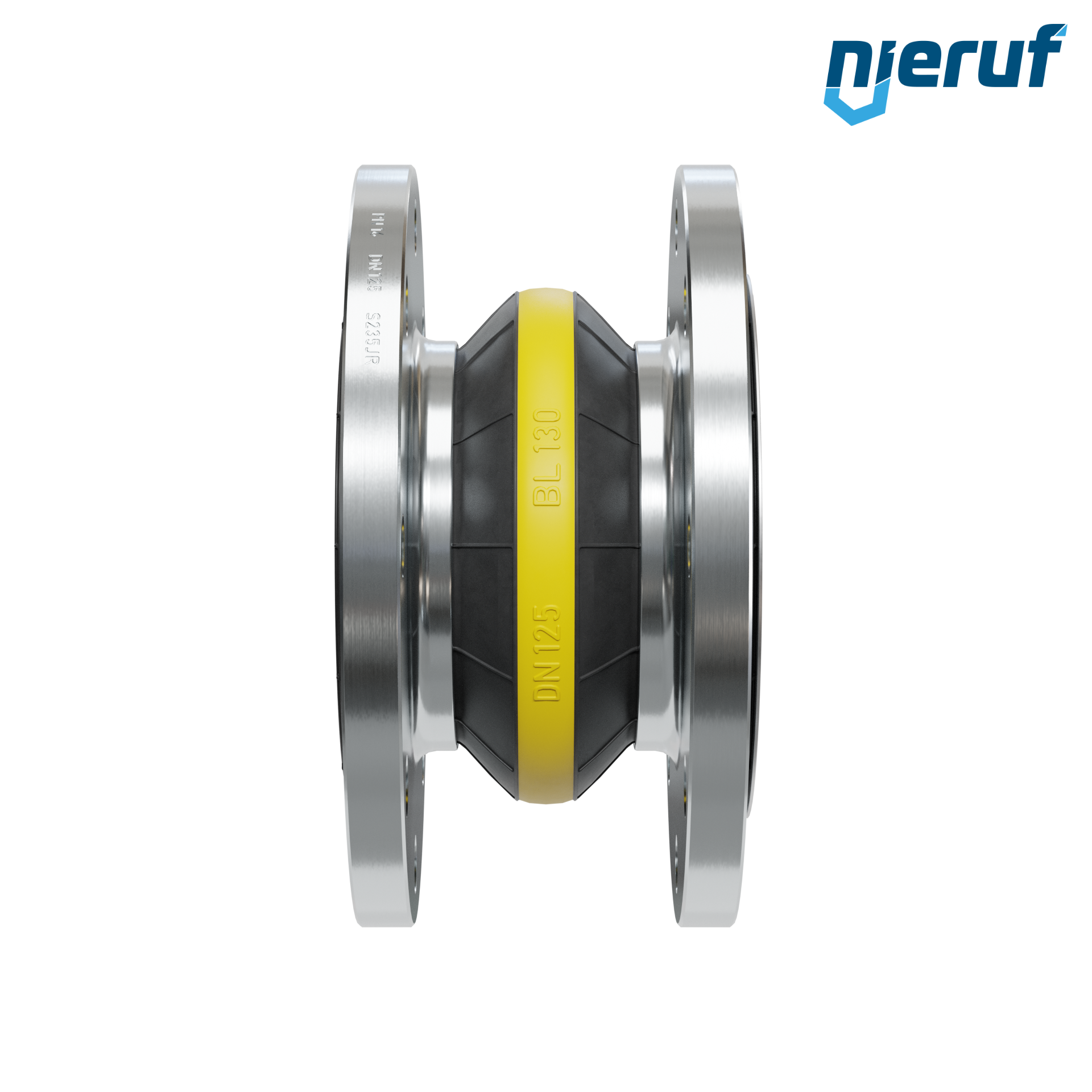 Rubber expansion joint DN125 guide pipe for liquid & gaseous media (no steam) with steel flanges & NBR seal