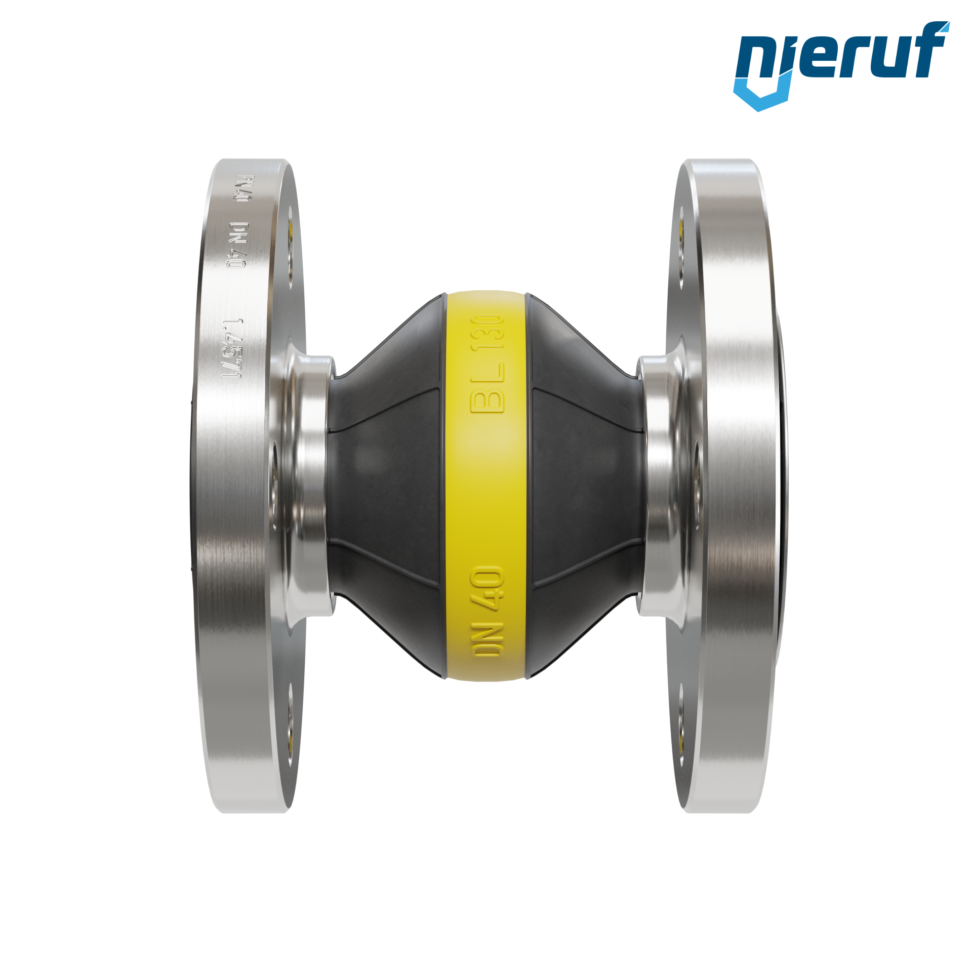 Rubber expansion joint DN40 guide pipe for liquid & gaseous media (no steam) with stainless steel flanges & NBR seal
