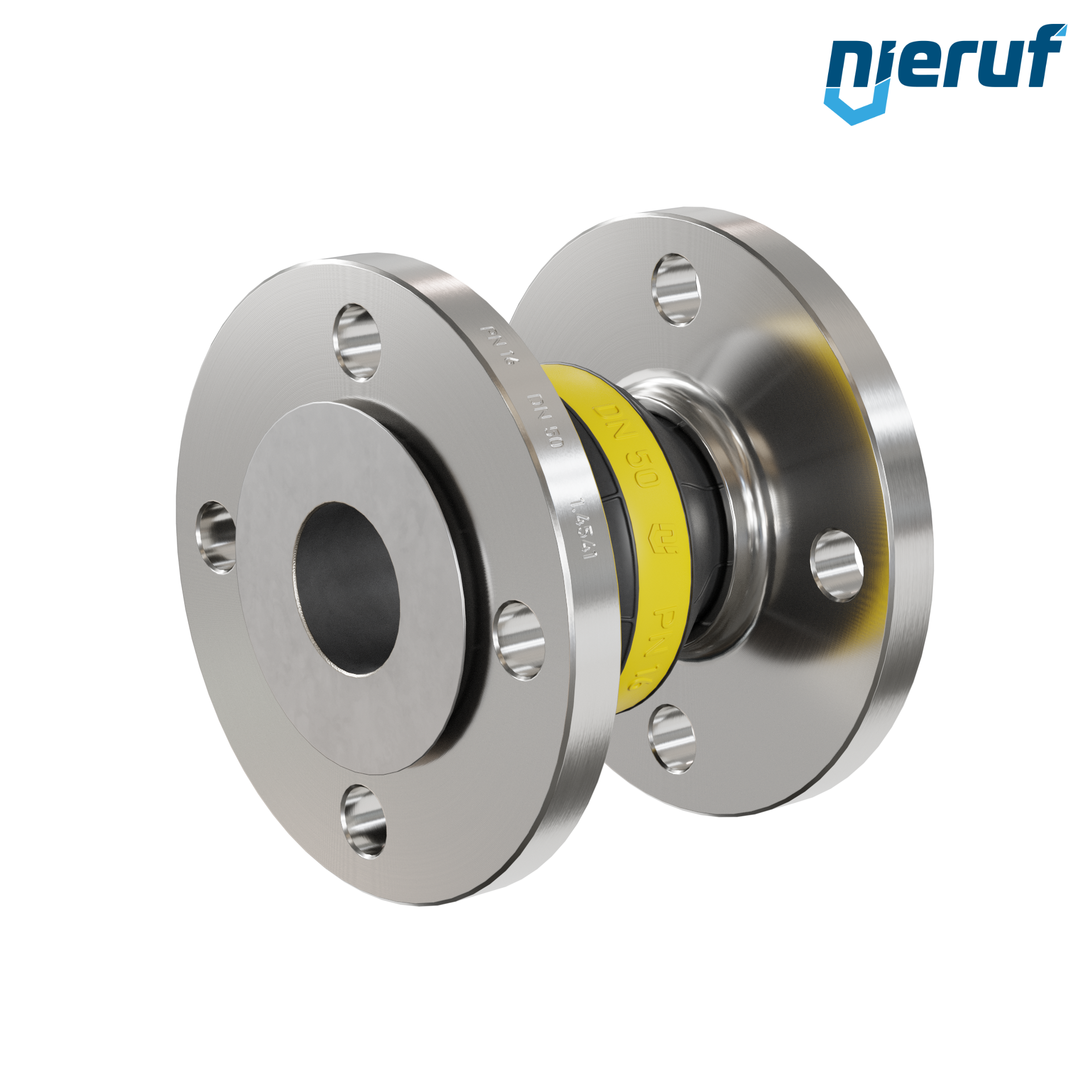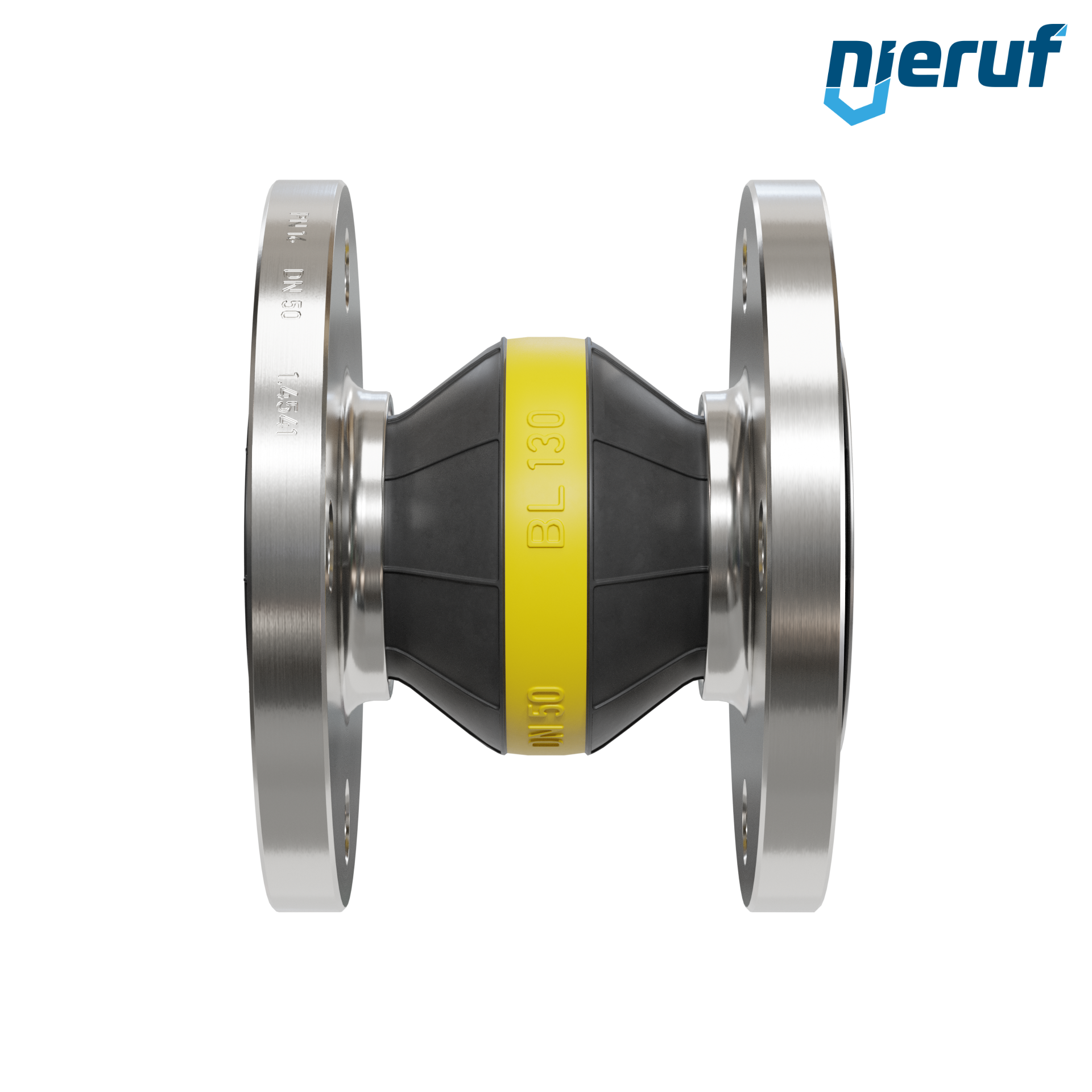 Rubber expansion joint DN50 guide pipe for liquid & gaseous media (no steam) with stainless steel flanges & NBR seal