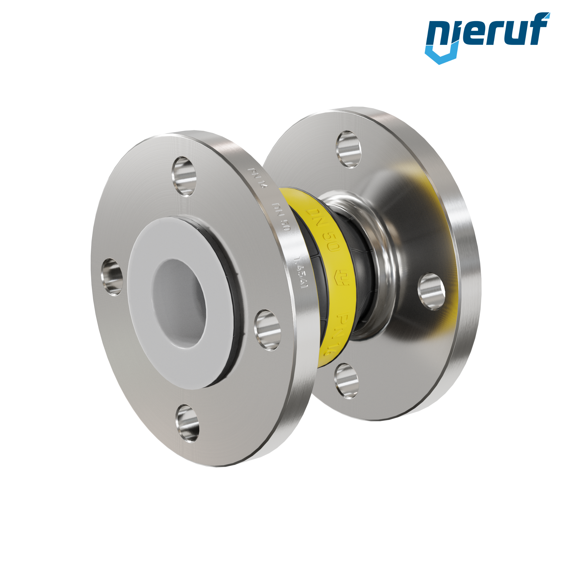 Rubber expansion joint DN50 PTFE lining for liquid & gaseous media (no steam) with stainless steel flanges & NBR seal
