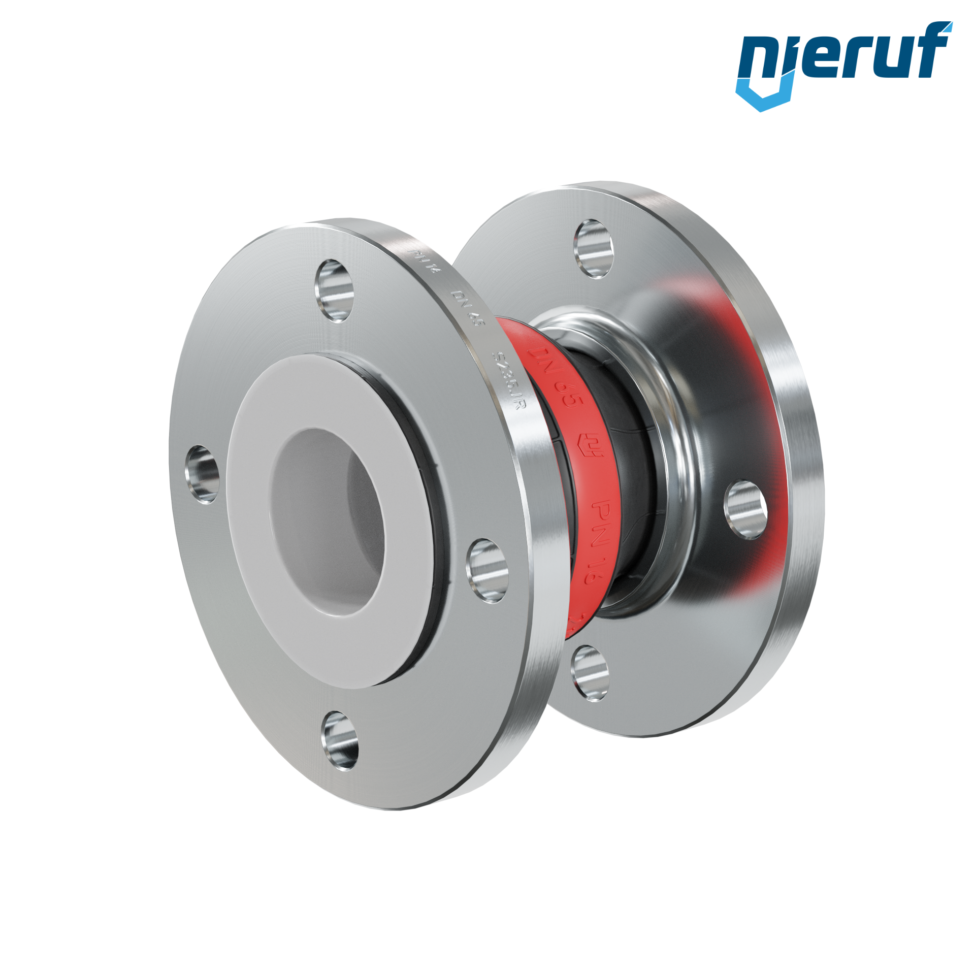 Rubber expansion joint DN65 PTFE lining for liquid & gaseous media (no steam) with steel flanges & EPDM seal
