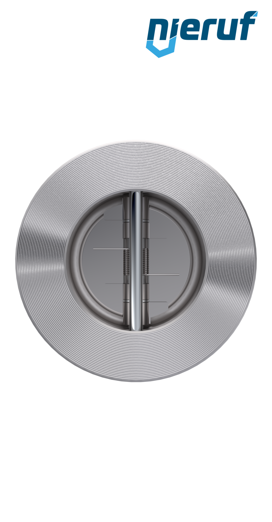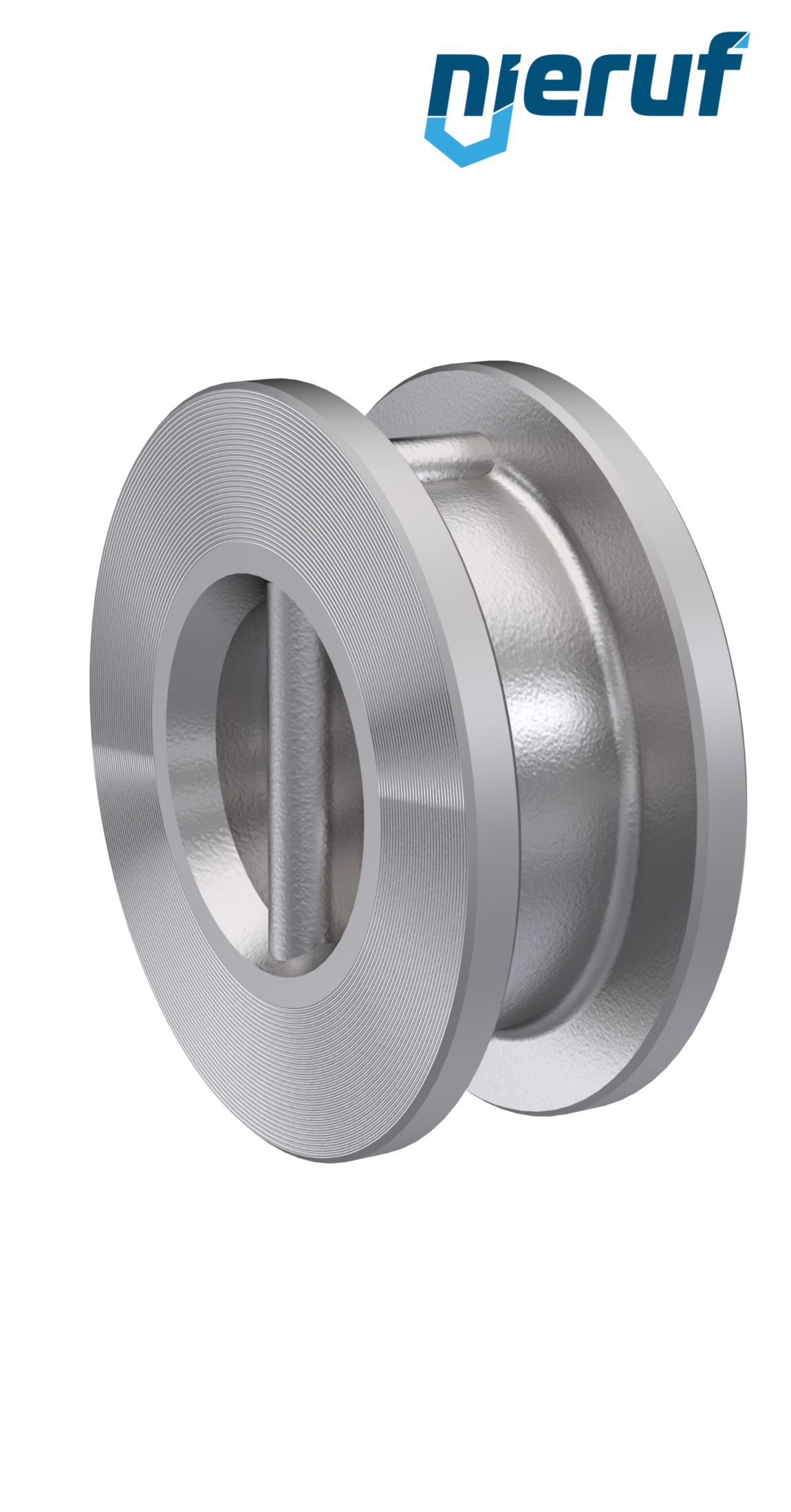 dual plate check valve DN100 seal metal PN 10/16 DIN EN 1092-1 Form B, body made of stainless steel 1.4408, wings made of stainless steel 1.4408