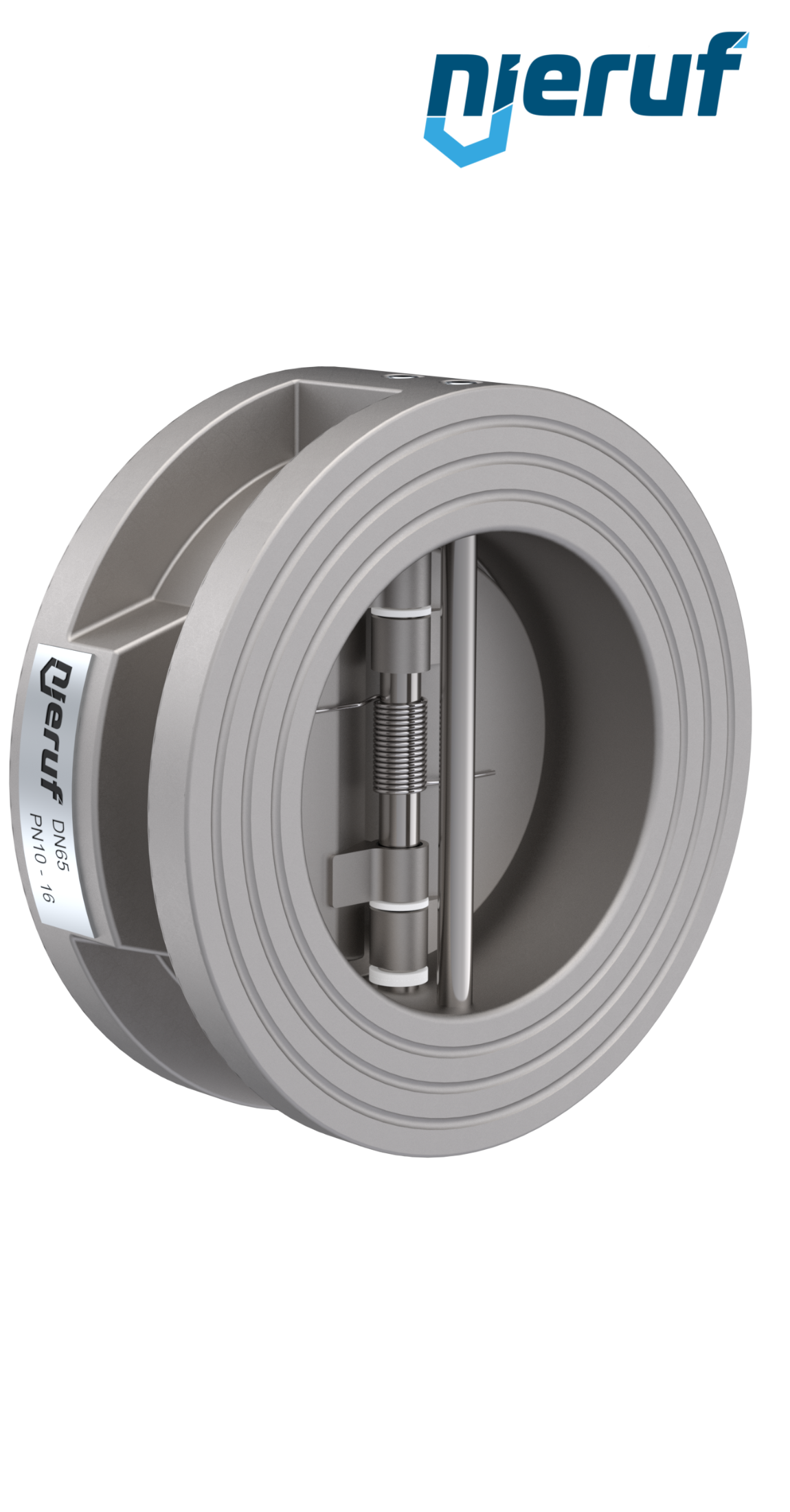 dual plate check valve DN65 seal EPDM PN 10/16/25/40 DIN EN 1092-1 Form B, body made of stainless steel 1.4408, wings made of stainless steel 1.4408