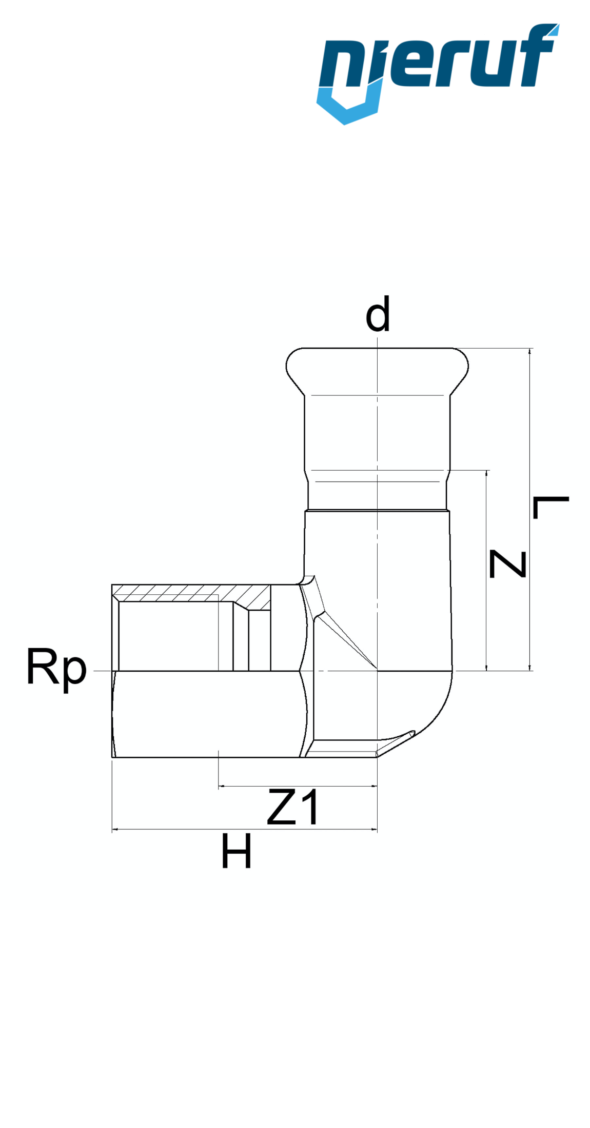 Elbow Coupling 90° PF01-05-03 with press connection F DN20 - 22,0 mm, female thread 3/4" inch made of stainless steel for liquid and gaseous media