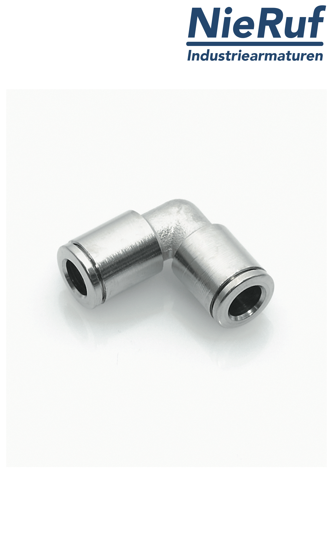 Elbow connector to connect or to plug pipes in pneumatic- or pressure air applications.
