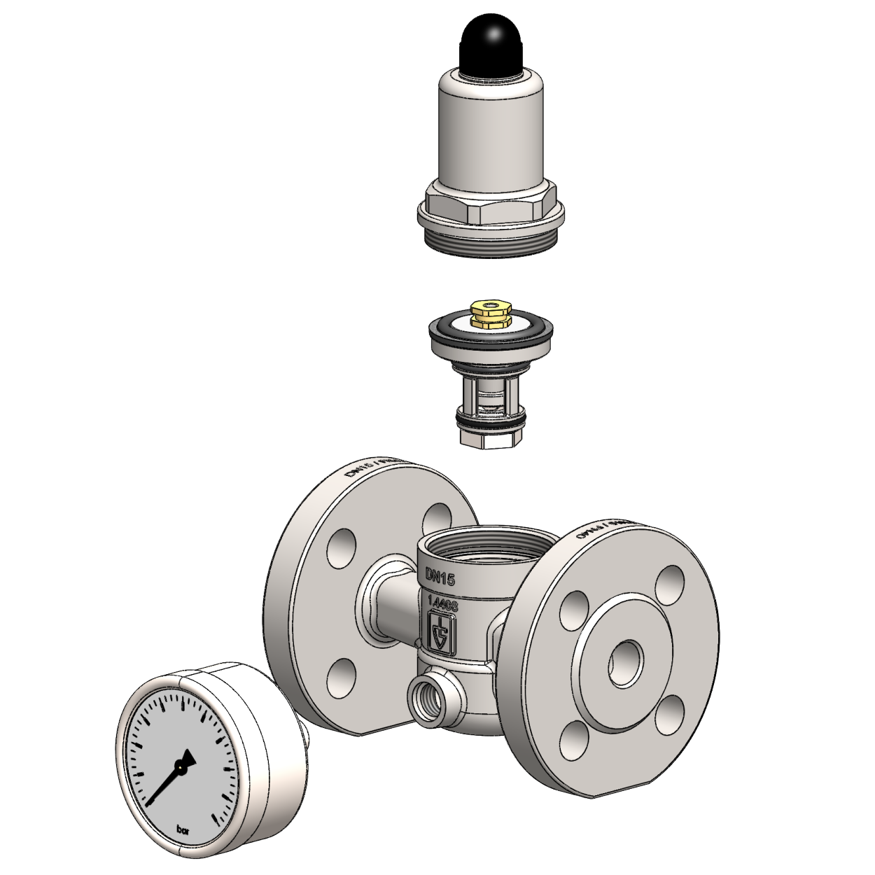 flange overflow valve DN 50 PN40 UV11 stainless steel AISI 316L 0,5 - 2,0 bar