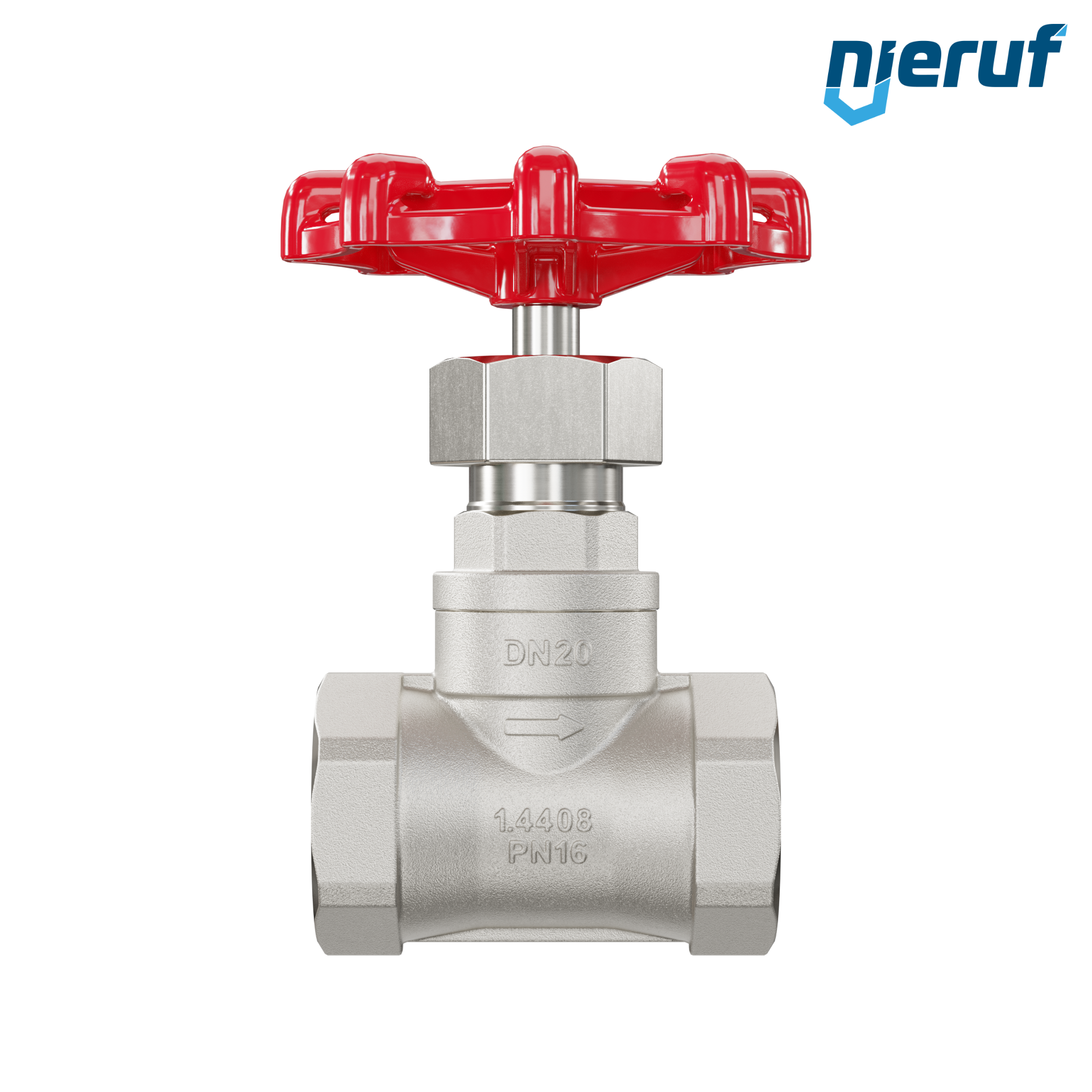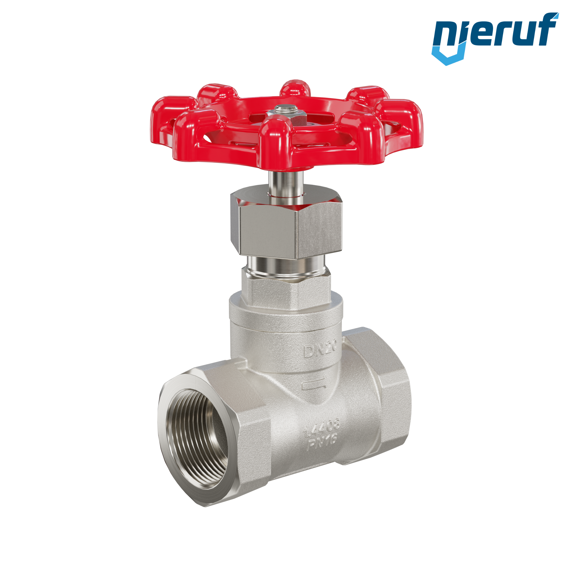 | product feature | Globe valve with female thread BSP connection, rising spindle and rising handwheel |