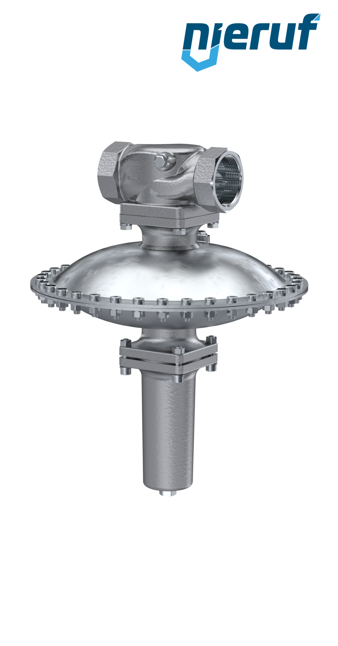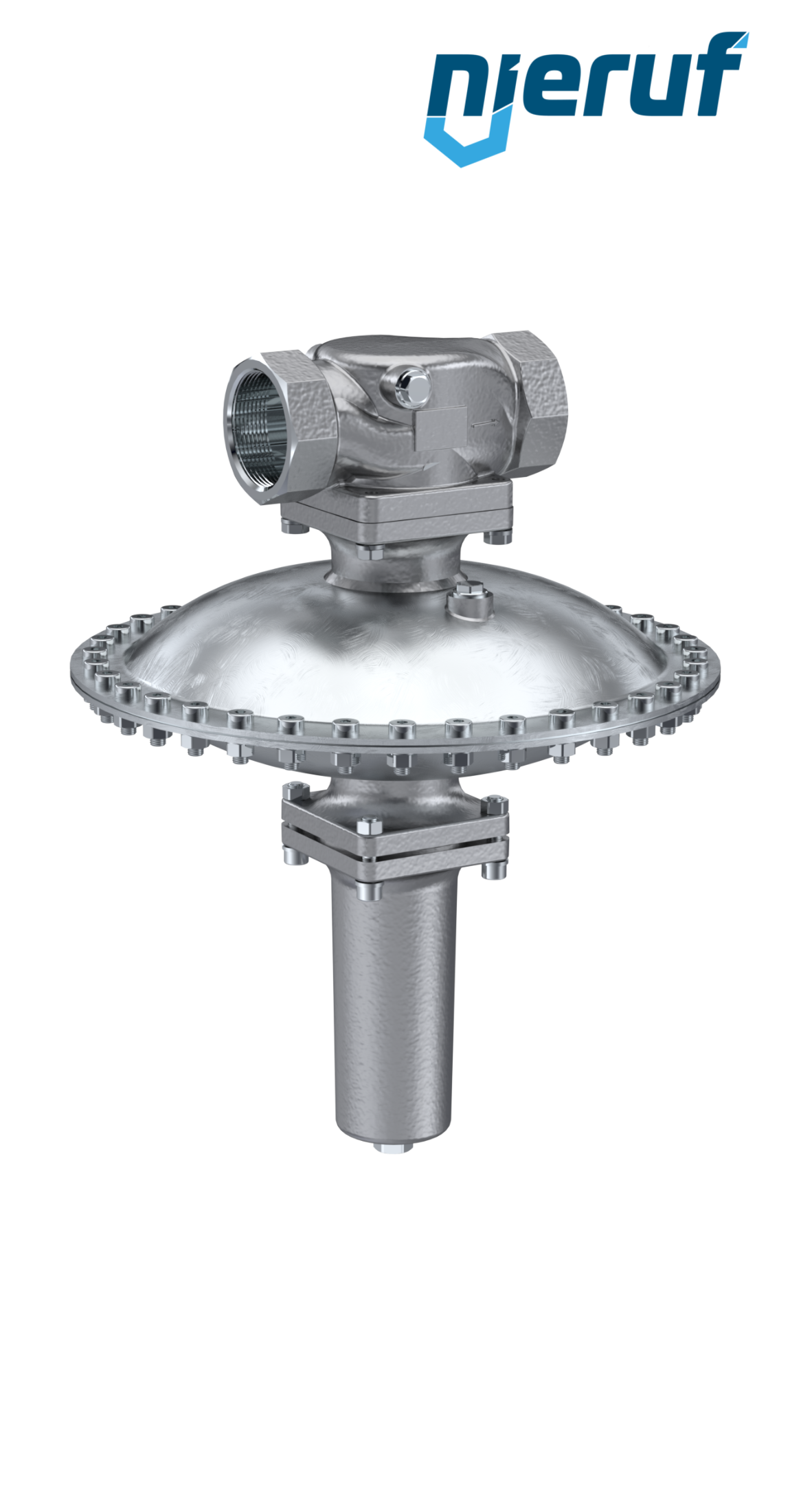 Millibar pressure reducing valve DN40 made of stainless steel with female thread for liquid and neutral gaseous media and FKM seal, set pressure 150 - 500 mbar
