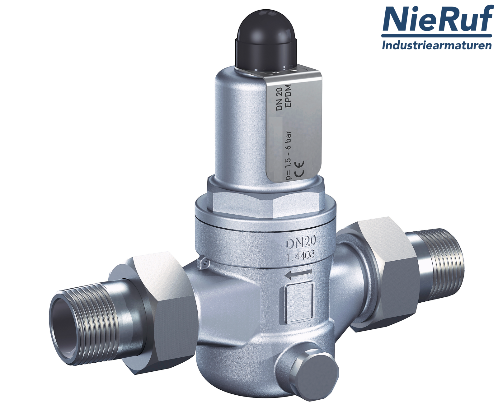 straightway form overflow valve 1" inch male type UV07 made of stainless steel CF8M / 316L pressure range 1,5 - 6,0 bar seal EPDM for liquid and gaseous media