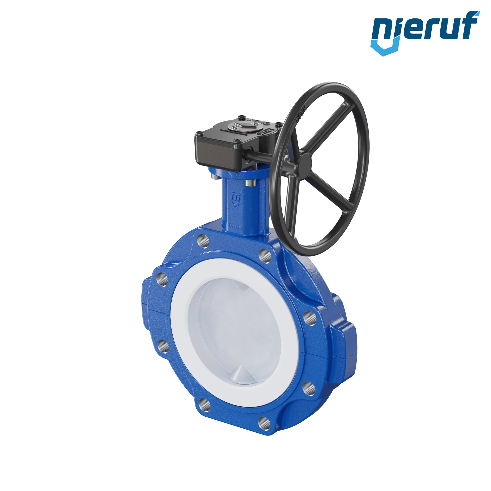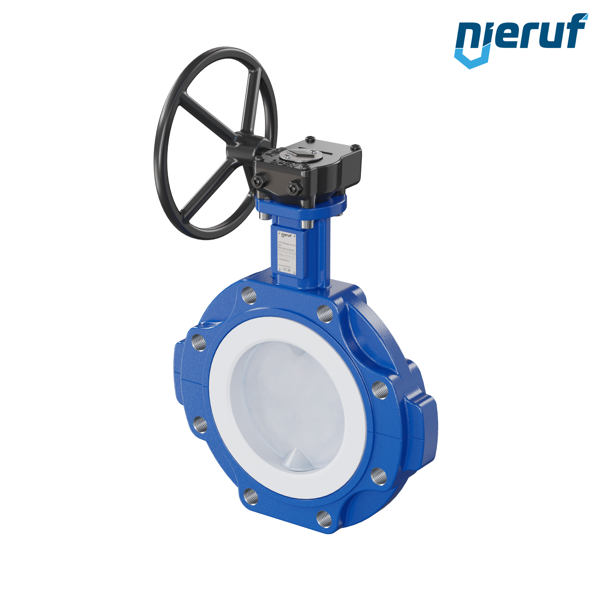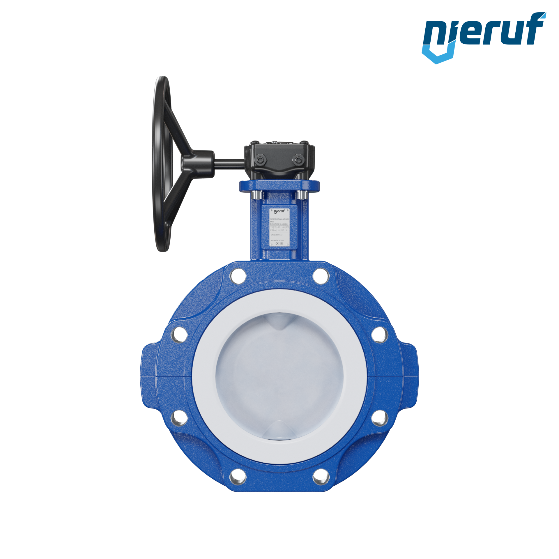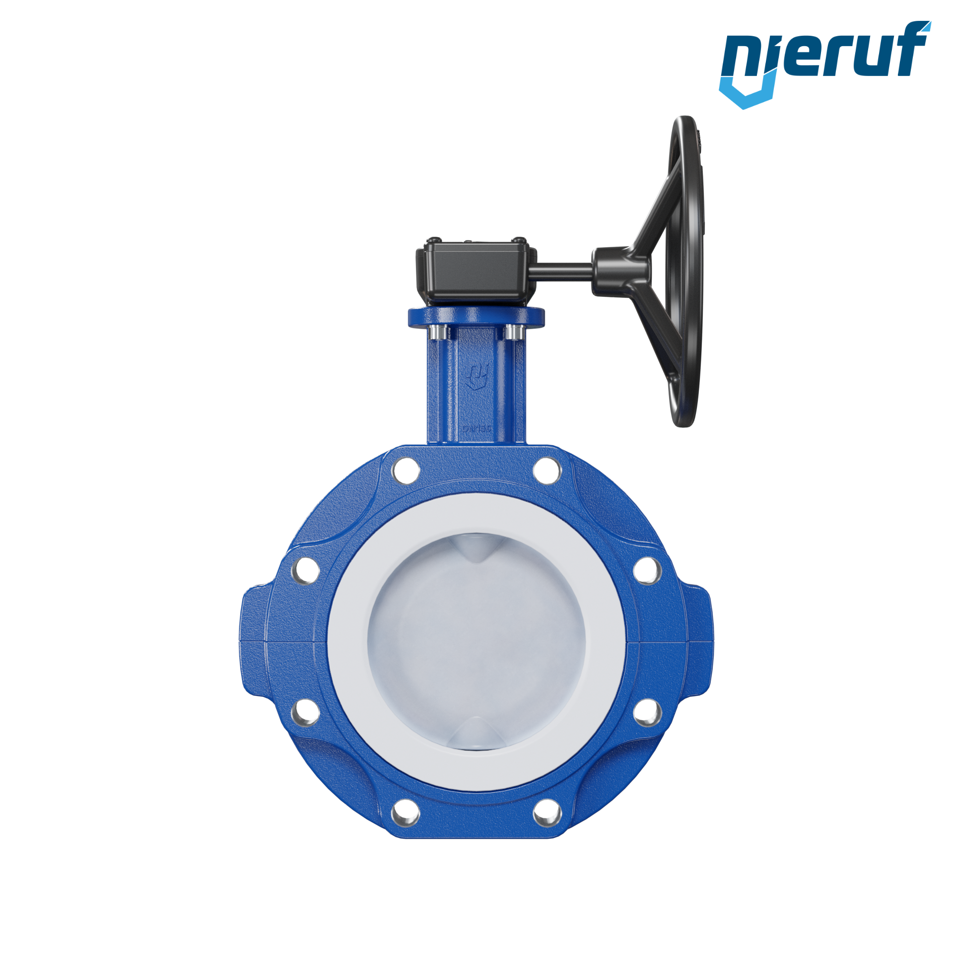 PFA-Butterfly-valve PTFE AK10 DN150 PN10-PN16 handwheel gearbox FKM insert