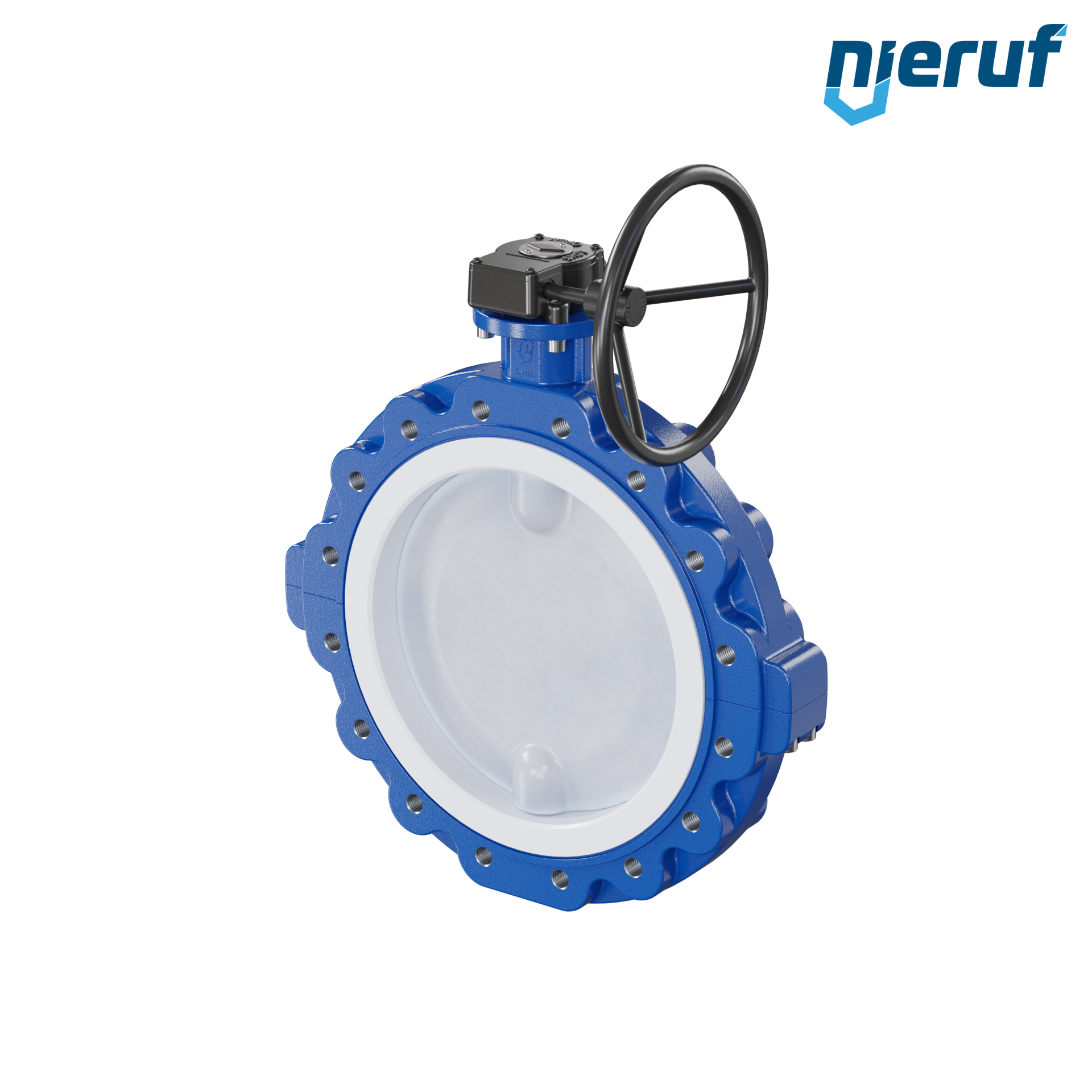 PFA-Butterfly-valve DN400 PN10 Lug type with handwheel gearbox seal made of PTFE and silicone insert for aggressive media
