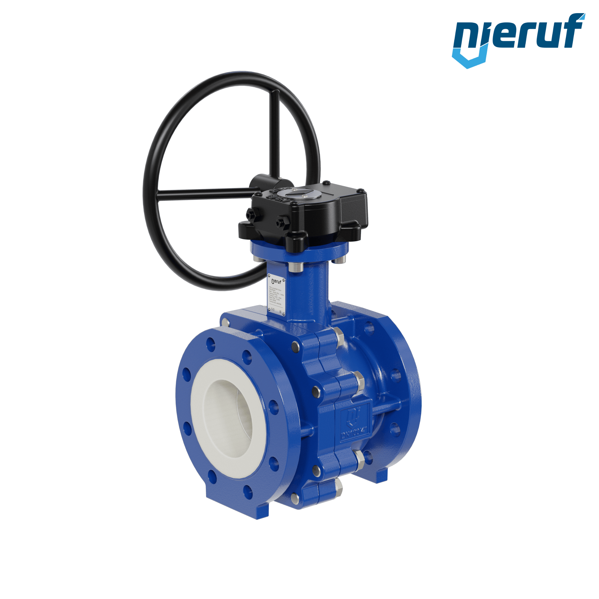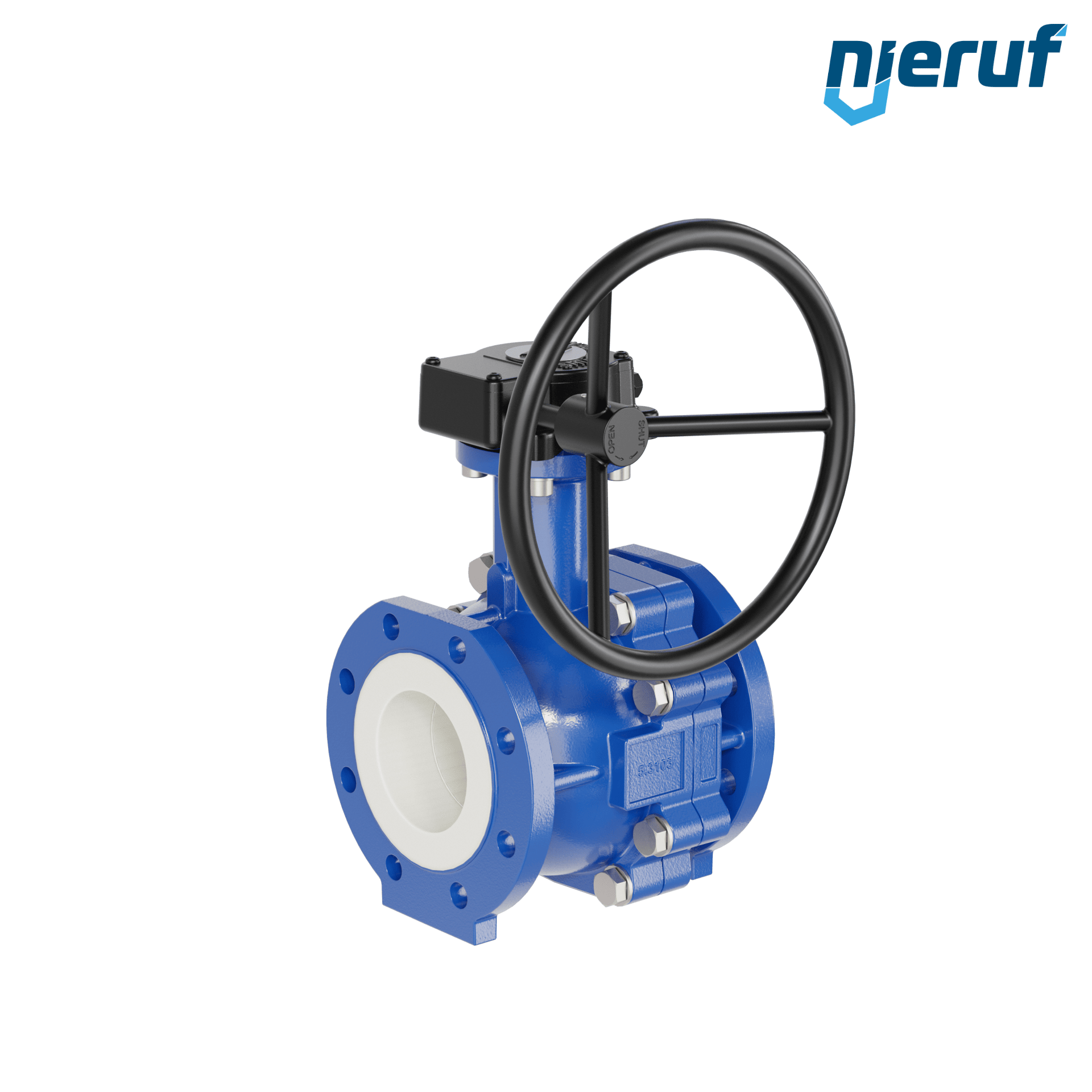 PFA-flange ball valve FK13 DN100 - 4" inch ANSI 150 made of spheroidal graphite cast iron with worm gear