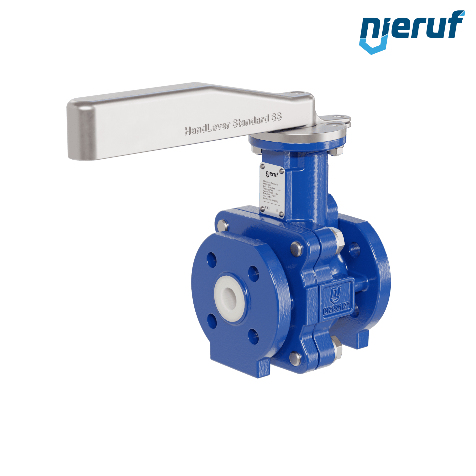 PFA-flange ball valve FK13 DN15 - 1/2" inch ANSI 150 made of spheroidal graphite cast iron with lever hand
