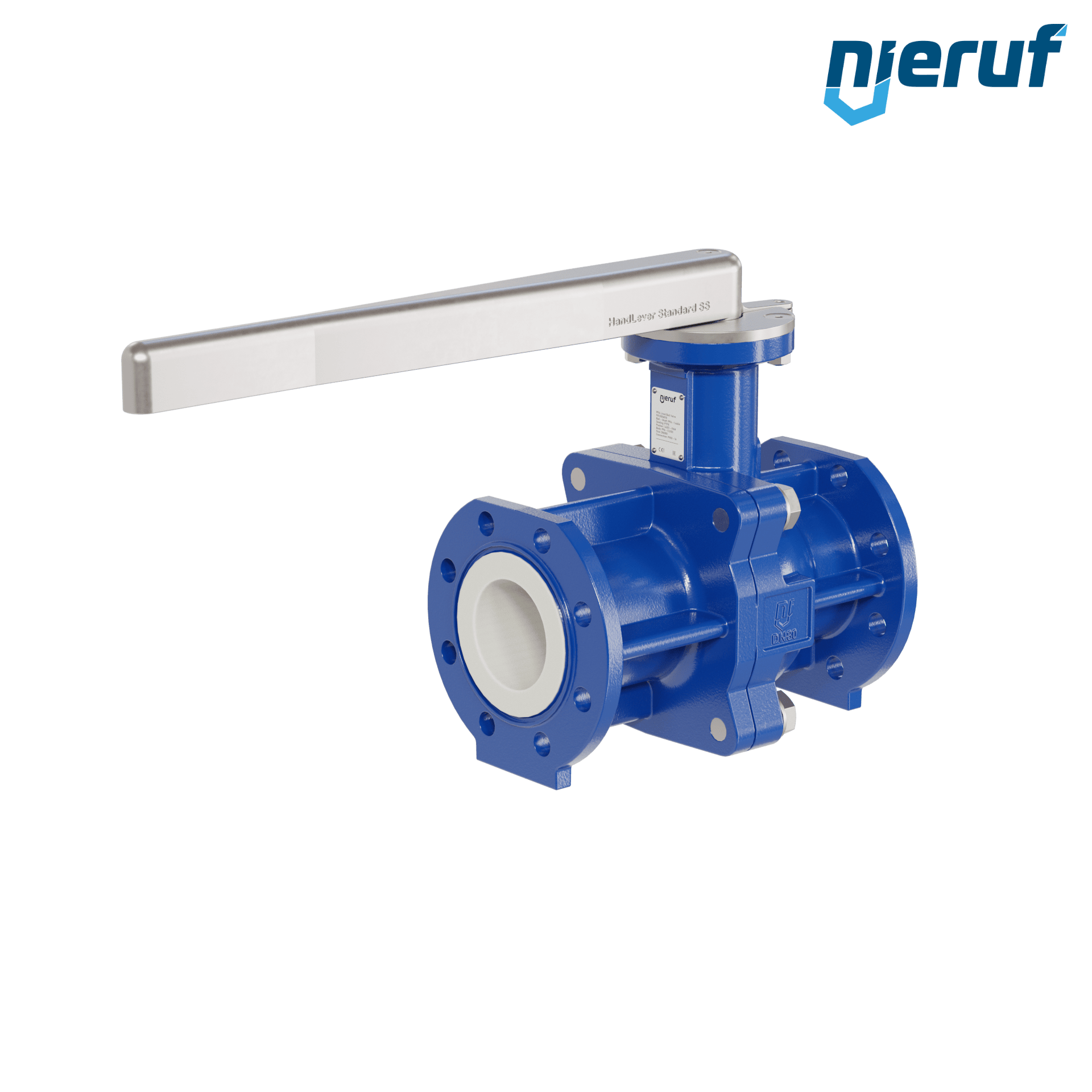PFA-flange ball valve FK13 DN80 - 3" inch PN10/16 made of spheroidal graphite cast iron with lever hand
