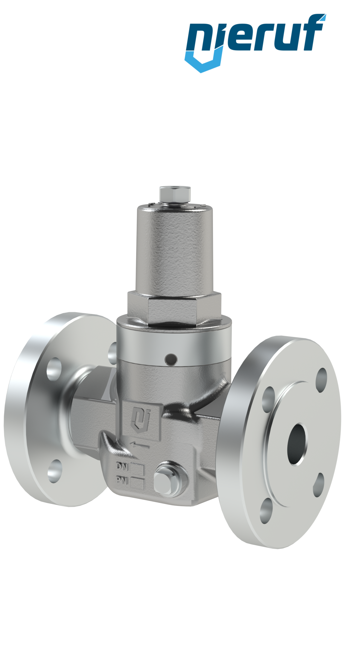 Piston-pressure reducing valve DN25 flange made of stainless steel seal FPM / FKM for liquid and neutral gaseous media, set pressure 2.0 - 20.0 bar