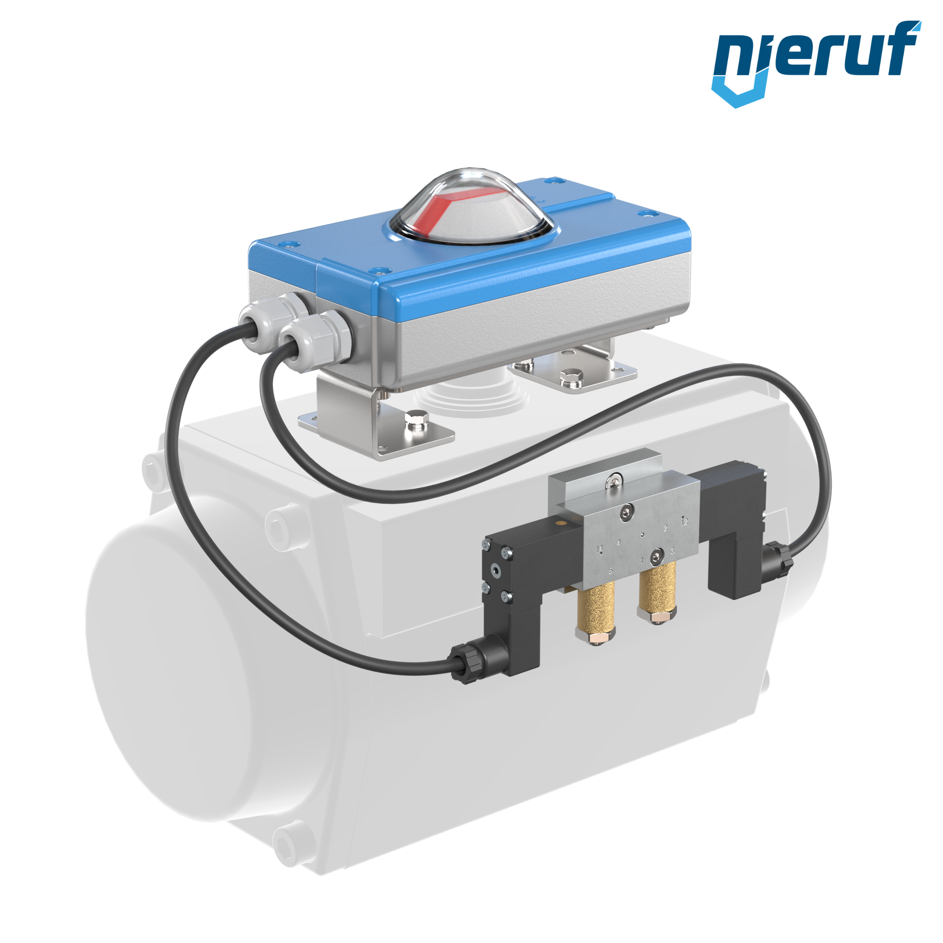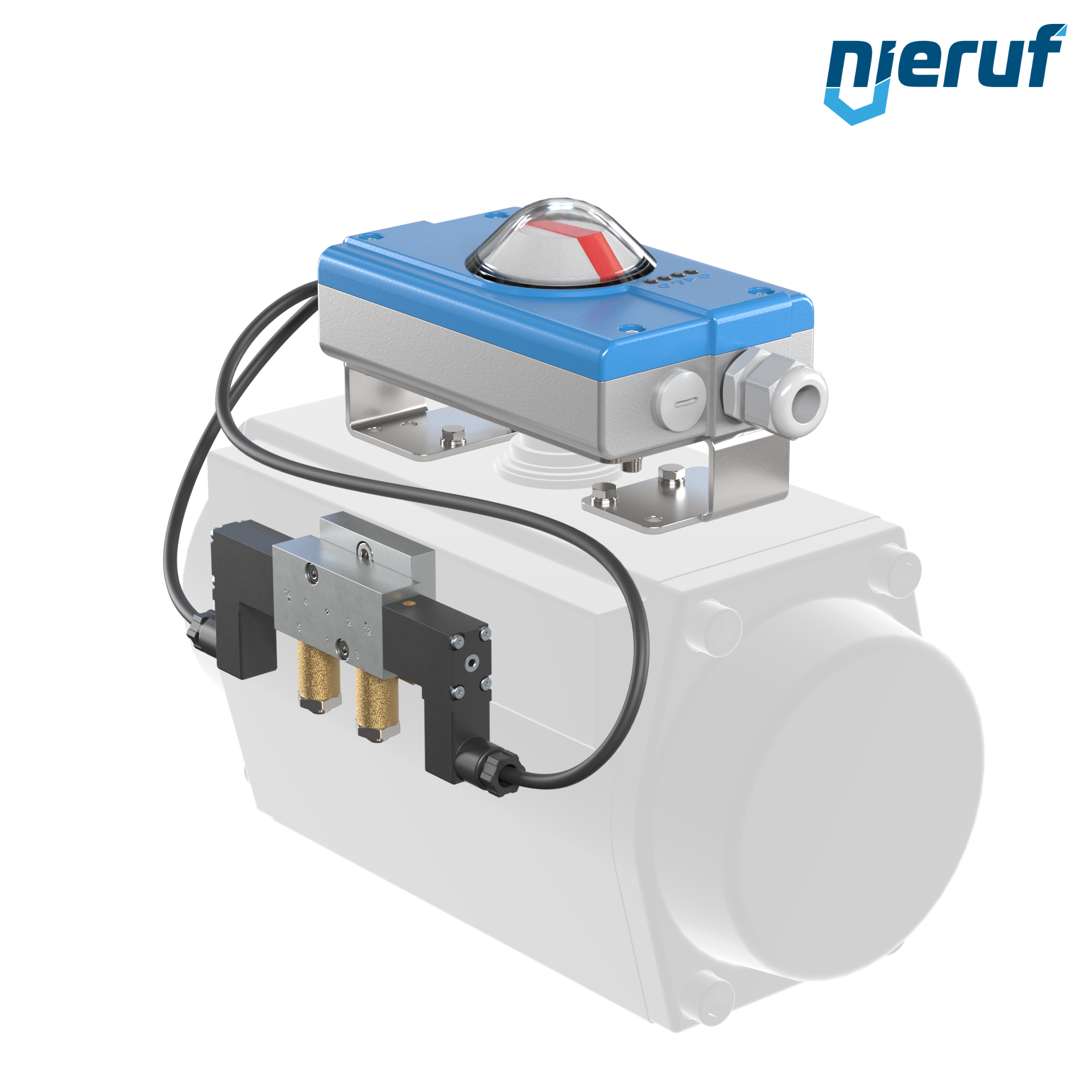 Positioner for adjustment and control as well as for precise positioning of pneumatic actuators. Change between positioning & 3-position mode possible. Compatible mounting bracket, solenoid valve group and cable connections included in the scope of delivery.
