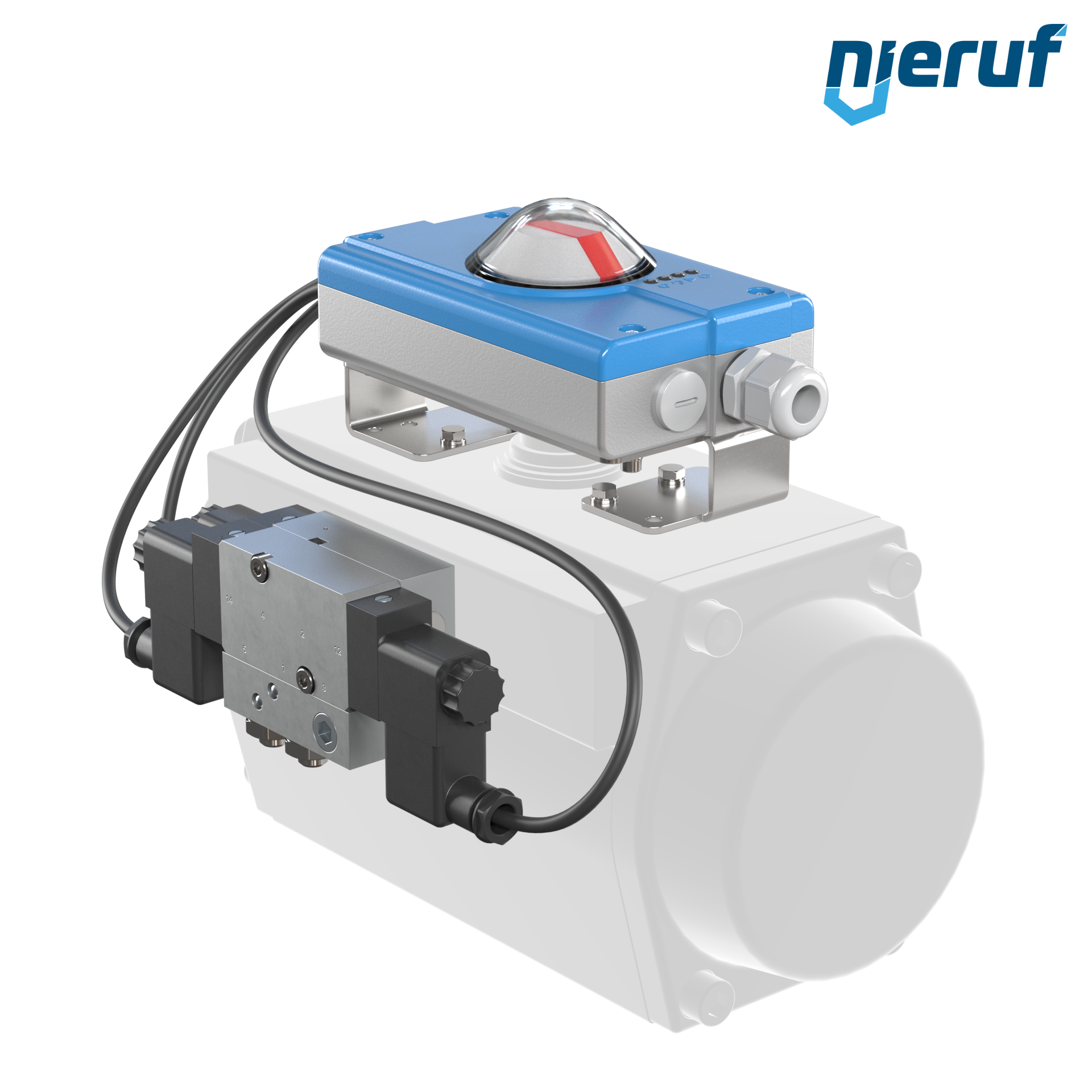 Positioner for adjustment and control as well as for precise positioning of pneumatic actuators. Change between positioning & 3-position mode possible. Compatible mounting bracket, solenoid valve group and cable connections included in the scope of delivery.