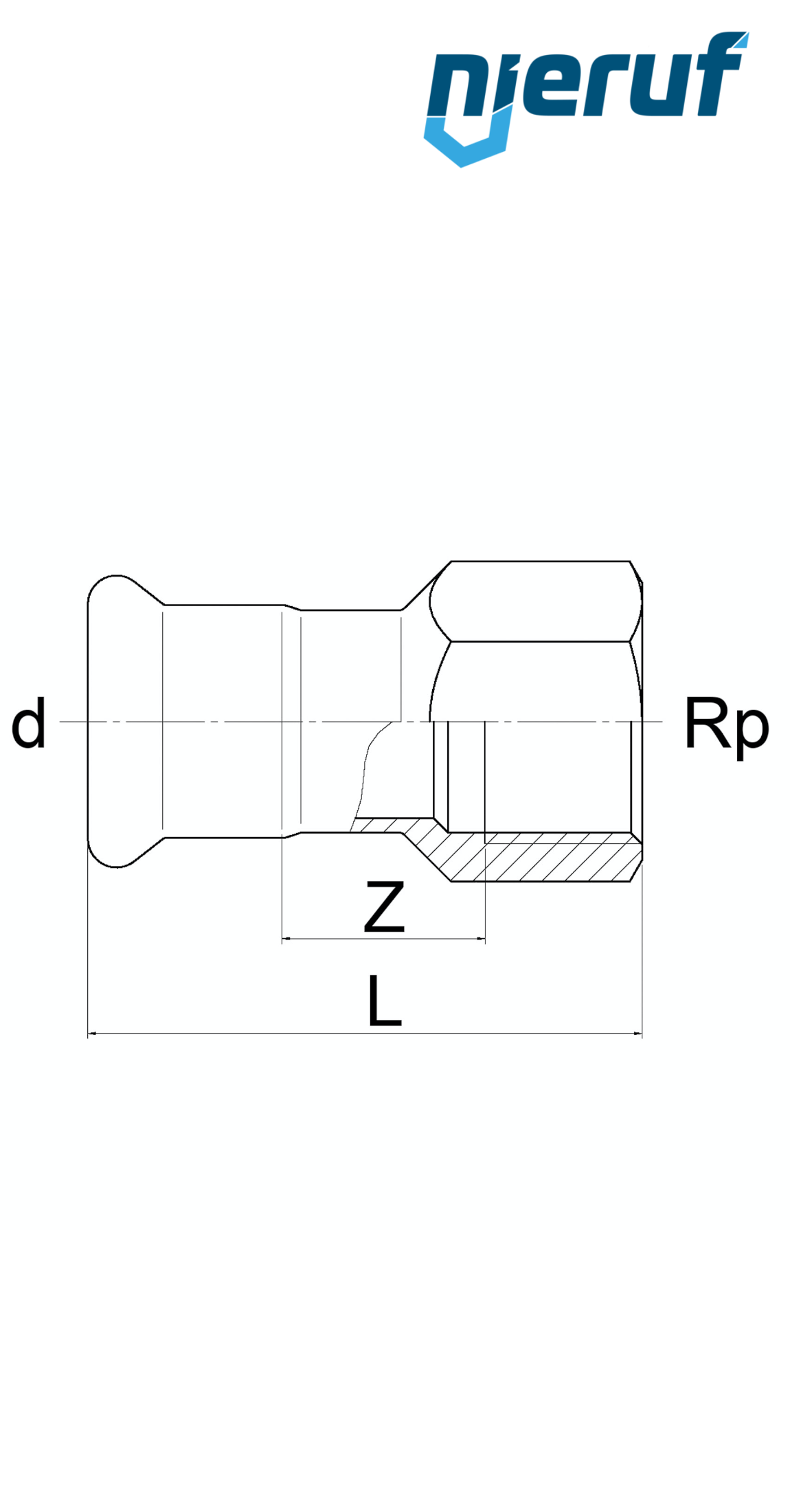 Press Fitting Female Coupling PF01-05-01 with press connection F DN12 - 15,0 mm, female thread 1/2" inch made of stainless steel for liquid and gaseous media
