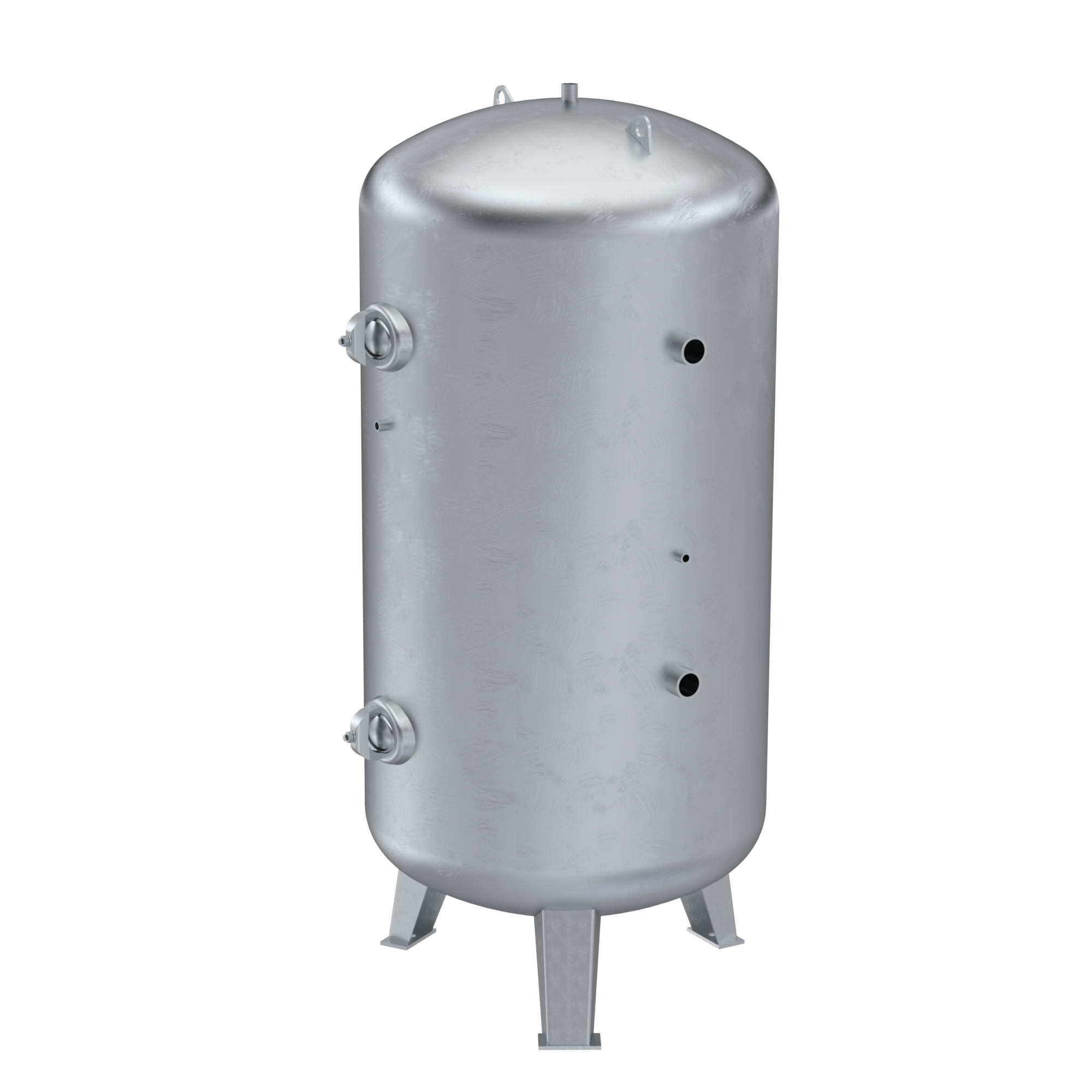 Pressure vessel BE01 with 150 liter volume vertical with operating pressure 0-16 bar made of steel galvanized and nominal size 450 mm