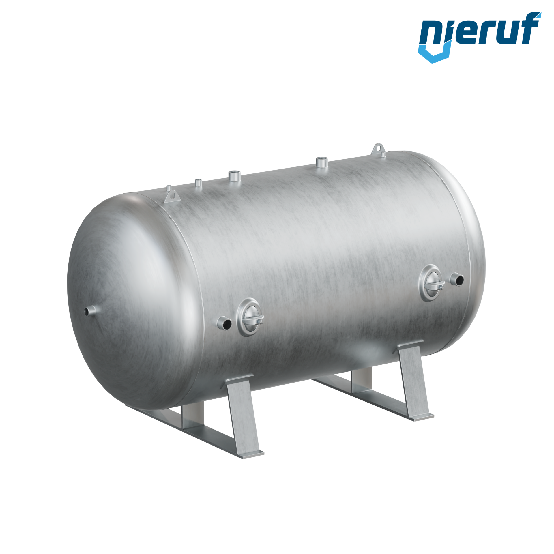 Pressure vessel BE01 with 3000 liter volume horizontal with operating pressure 0-16 bar made of steel galvanized and nominal size 1250 mm
