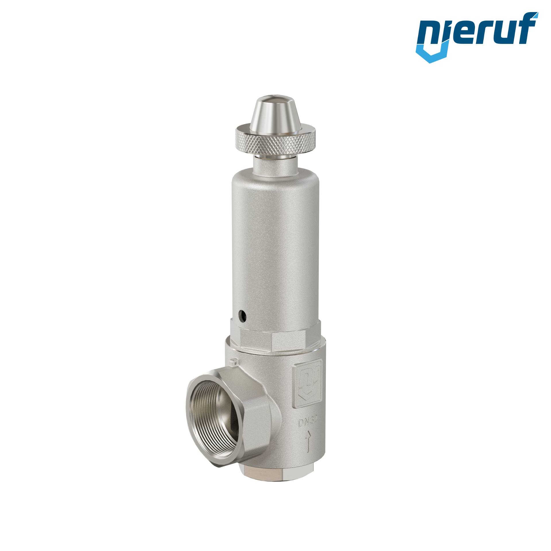 safety valve 1 1/4" x 2" fm set pressure 0,5 - 70,0 bar for neutral gaseous media made of stainless steel seal PTFE with an twist-type lifting mechanism