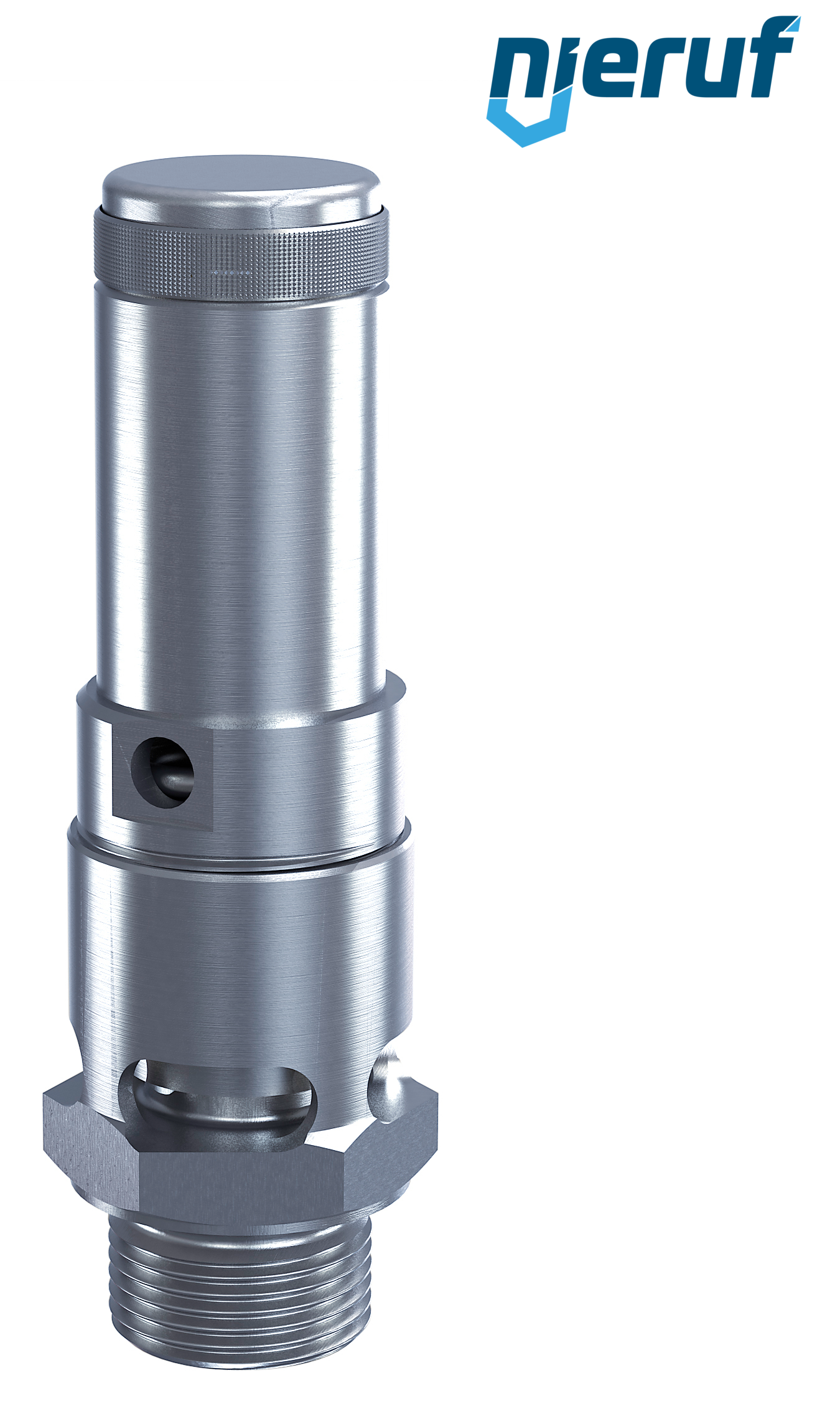 safety valve 1/4" m Typ SV02 atmospheric discharg for air, made of stainless steel with an FKM seal, pressure 0,2 - 25,0 bar- higher pressures possible in PTFE version
