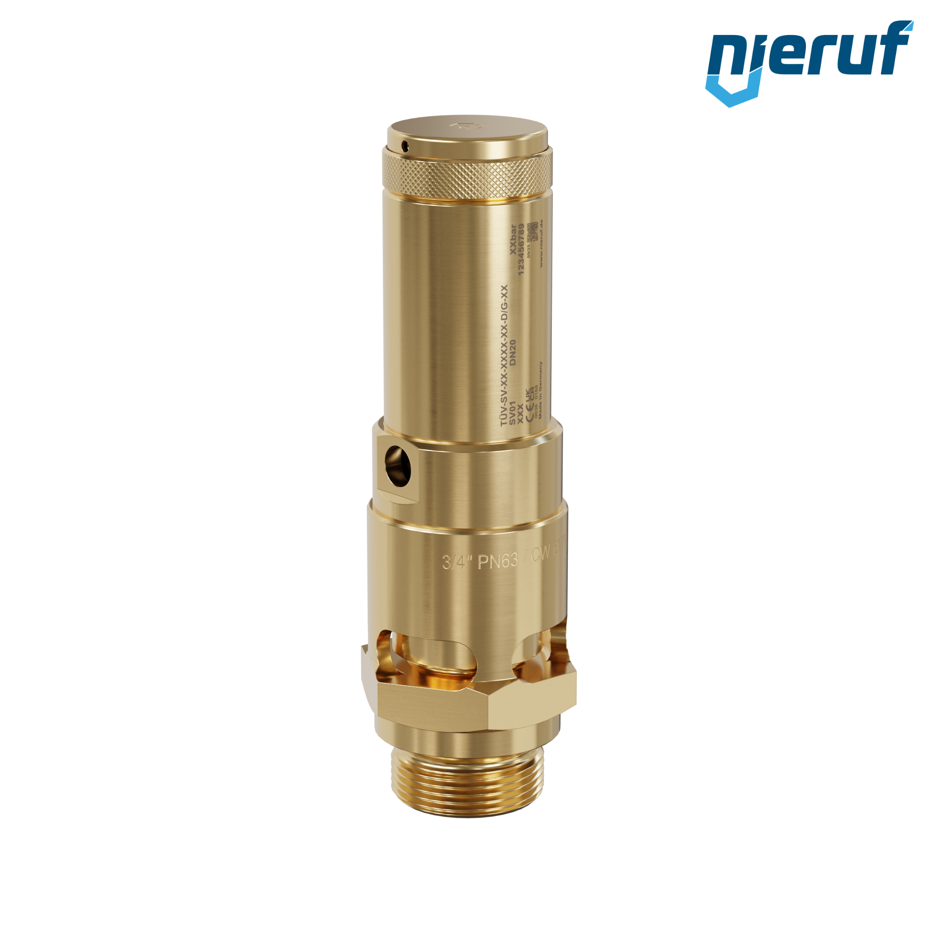 safety valve 3/4" m Typ SV01 atmospheric discharg for air, made of brass with an FKM seal, pressure 0,2 - 25,0 bar- higher pressures possible in PTFE version