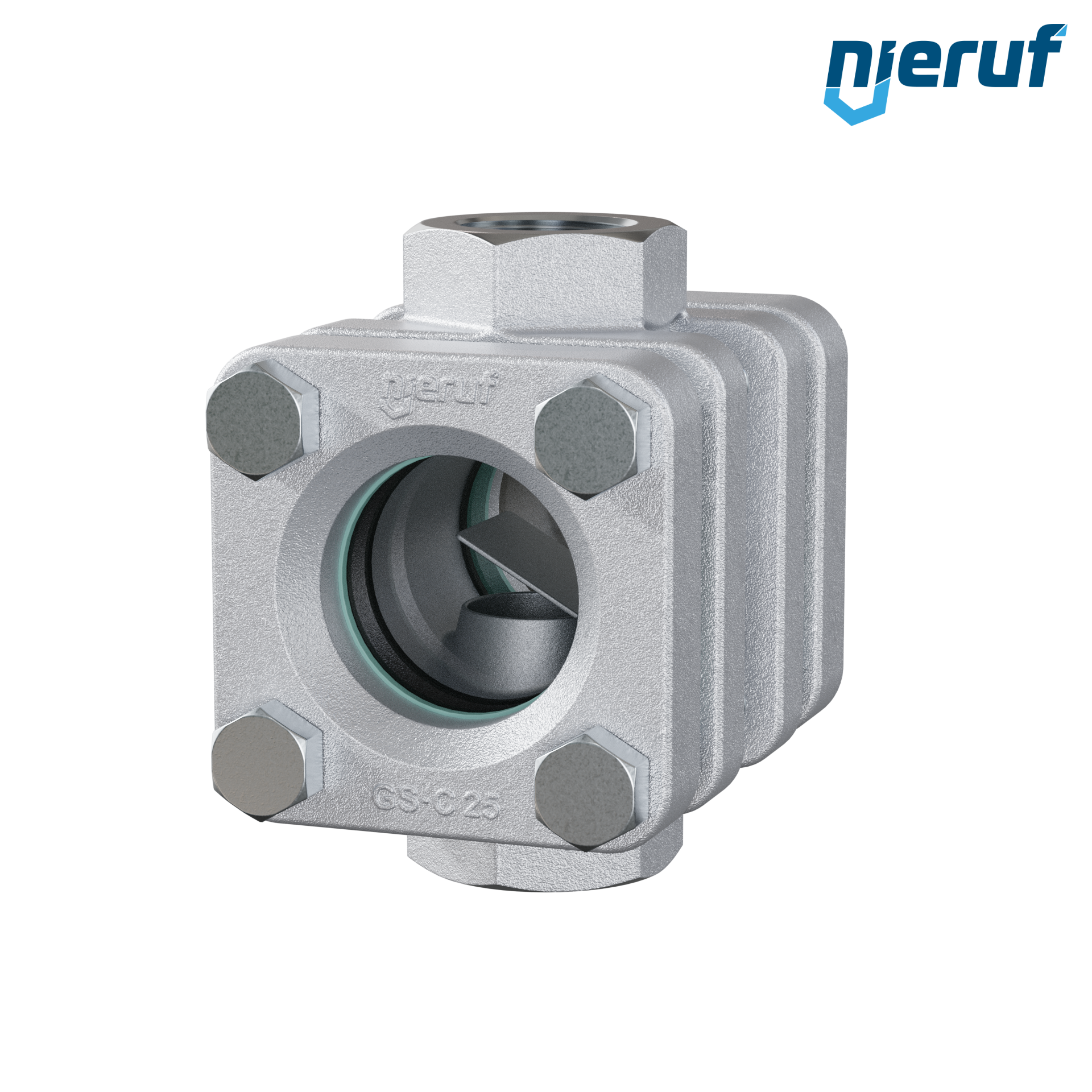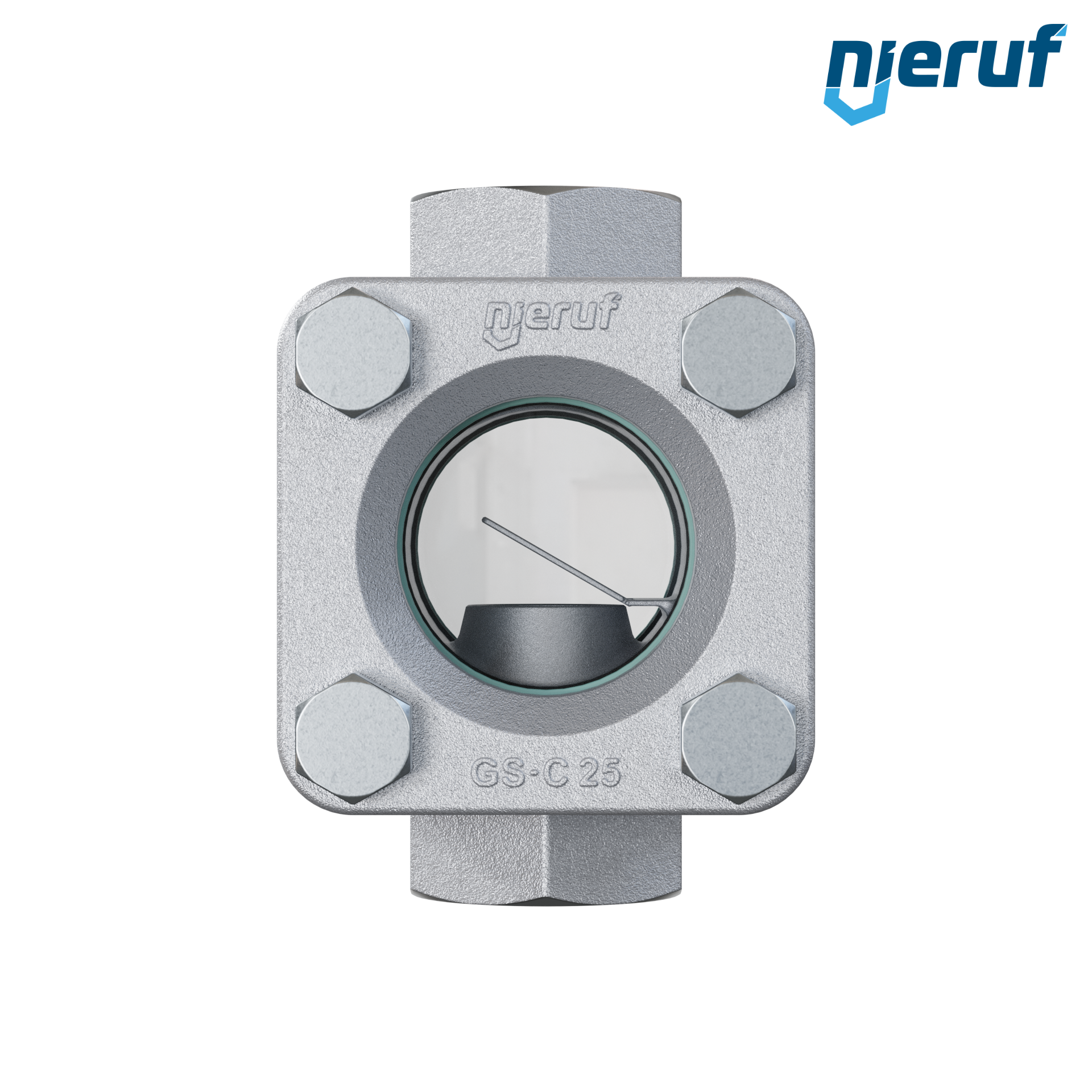 sight flow indicator version with flap type GS02 made of carbon steel 1.0619, borosilicate glass and seal graphit G 1" Inch female thread BSP 40 bar