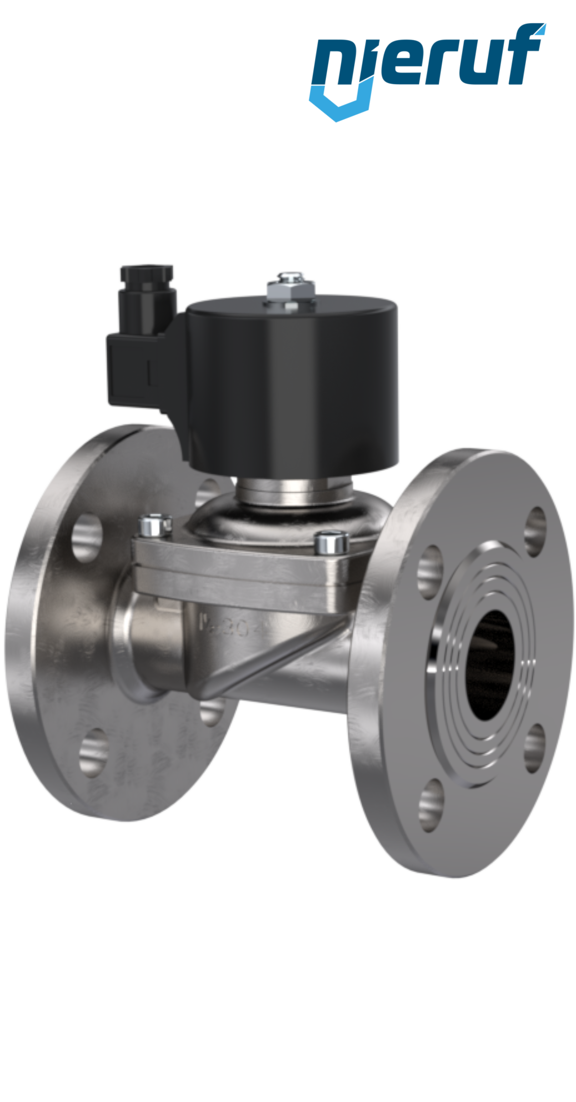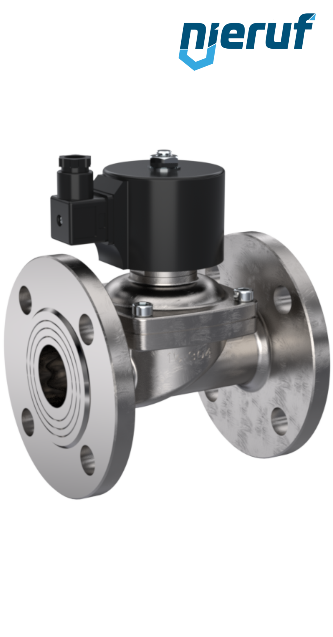 2/2 Ways Solenoid valve flange DN25 made of stainless steel 1.4308 seal FKM force pilot operated nominal voltage 24V DC pressure 0,0 - 8 bar