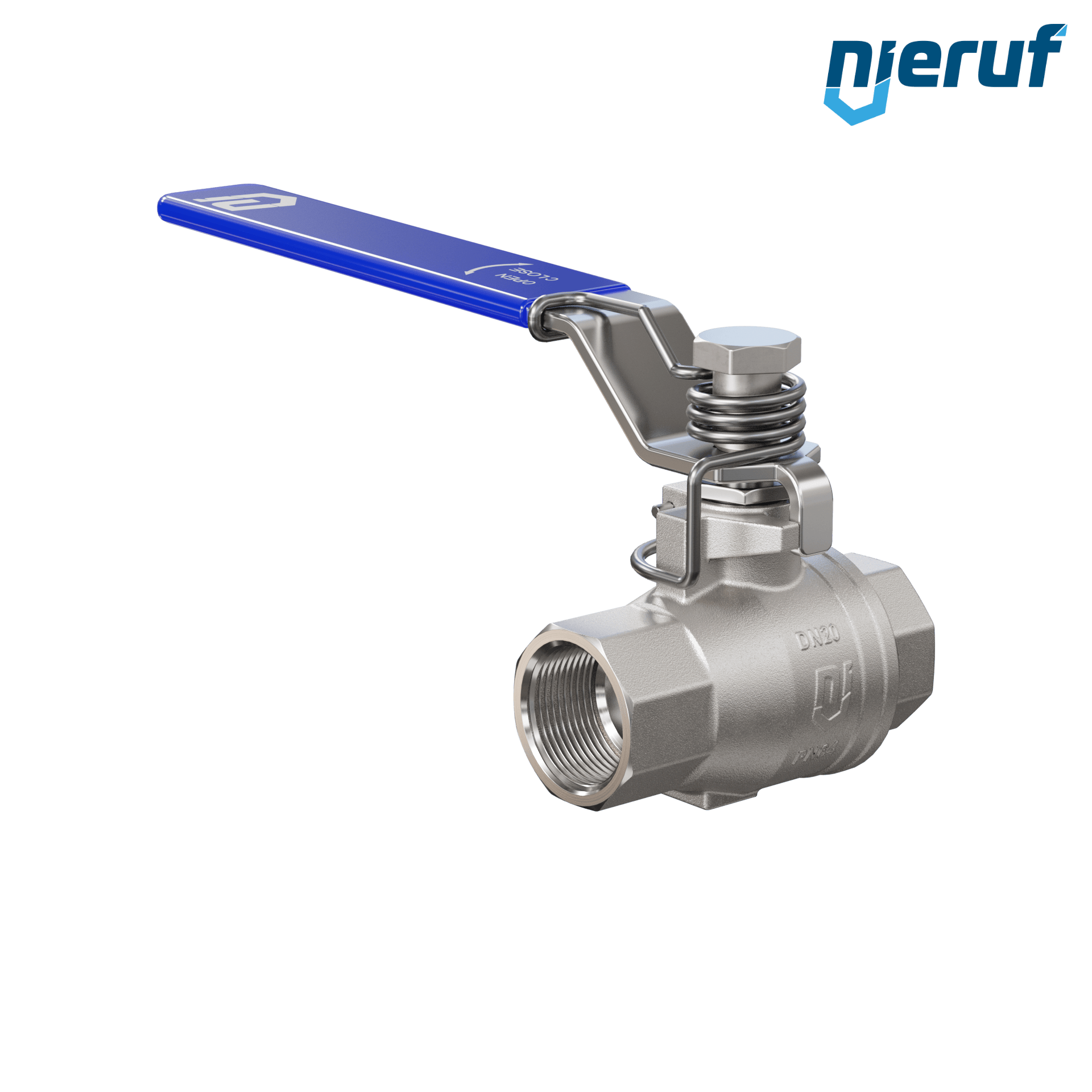 ball valve with spring reload DN20 - 3/4" inch full port design seal made of PTFE for liquid and gaseous media