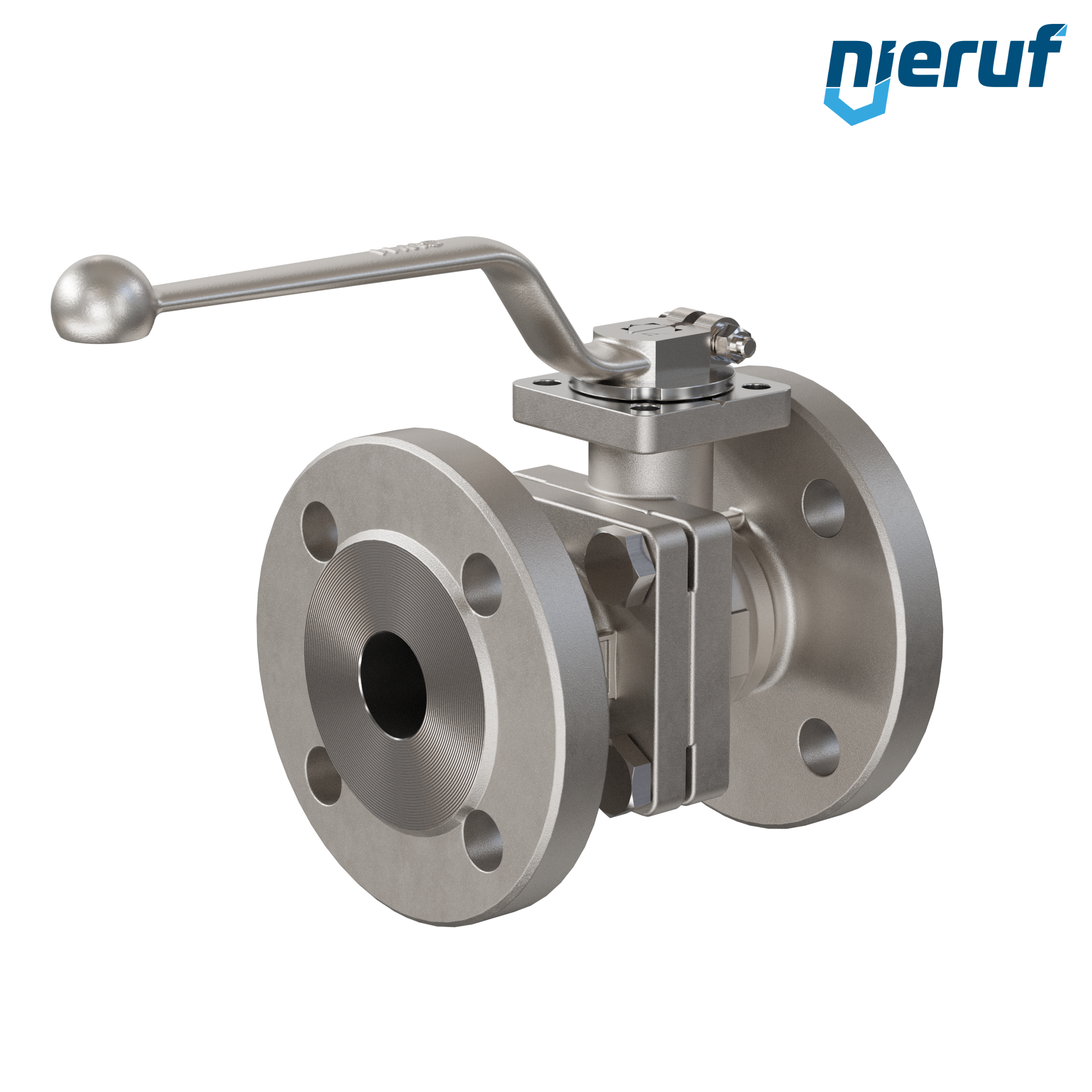 | product description | This high quality ball valve is made of stainless steel and has a blow-out proof stem with graphite seal and is suitable for gaseous media such as steam. The body is two-piece with mounting flange according to DIN ISO 5211 and lever handle made of stainless steel. |