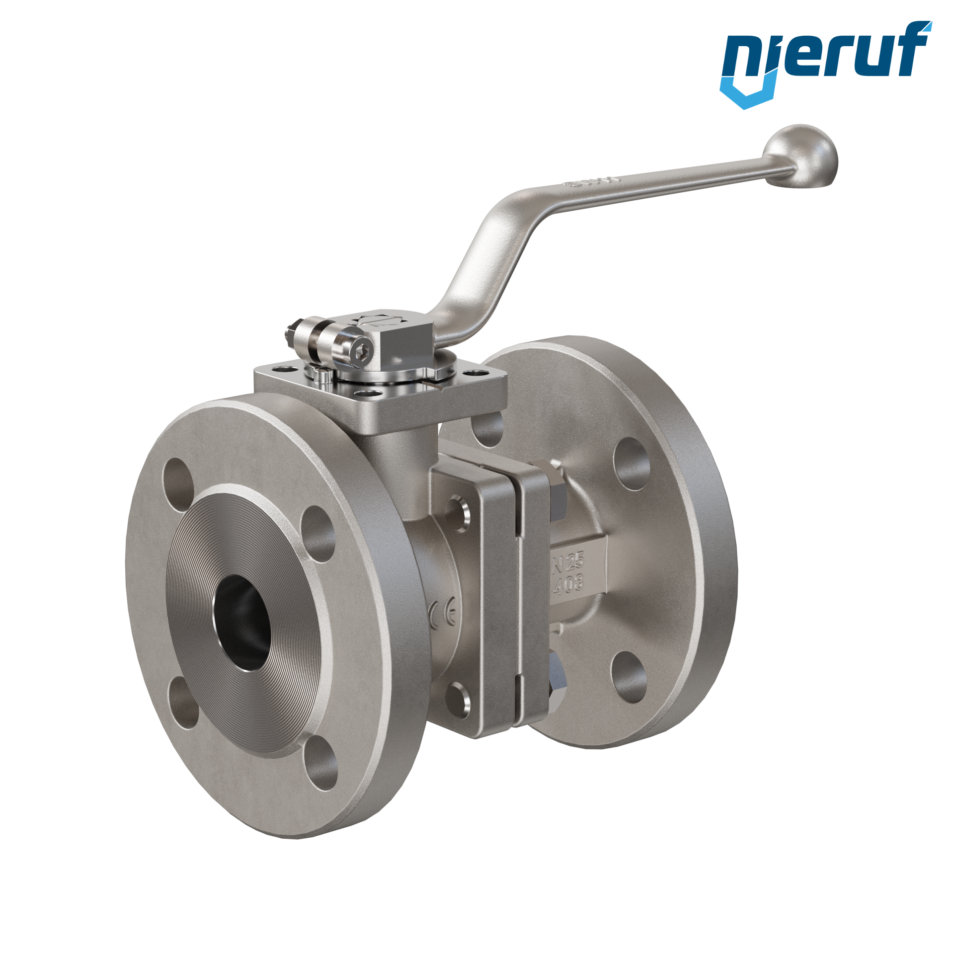 This high quality ball valve is made of stainless steel and has a blow-out proof stem with graphite seal and is suitable for gaseous media such as steam. The body is two-piece with mounting flange according to DIN ISO 5211 and lever handle made of stainless steel.