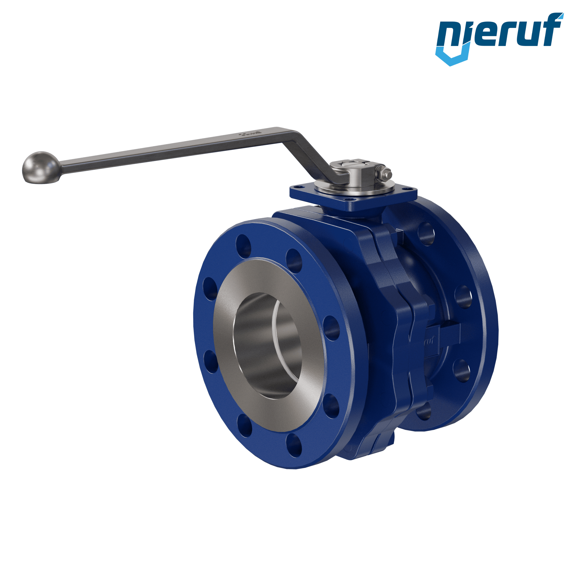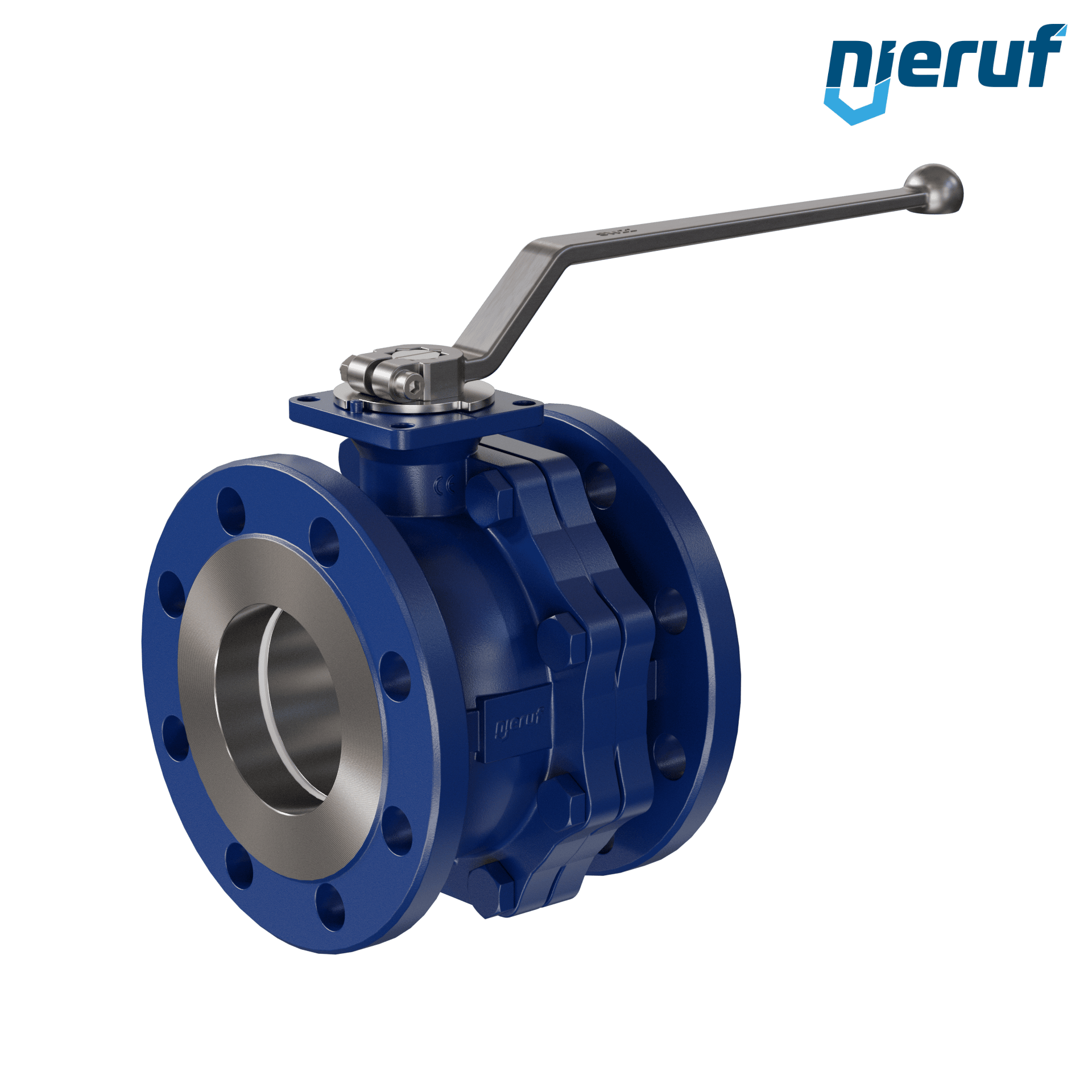 | product description | This high quality ball valve is made of cast steel and has a blow-out proof stem with graphite seal and is suitable for gaseous media such as steam. The body is two-piece with mounting flange according to DIN ISO 5211 and lever handle made of galvanized steel. |
