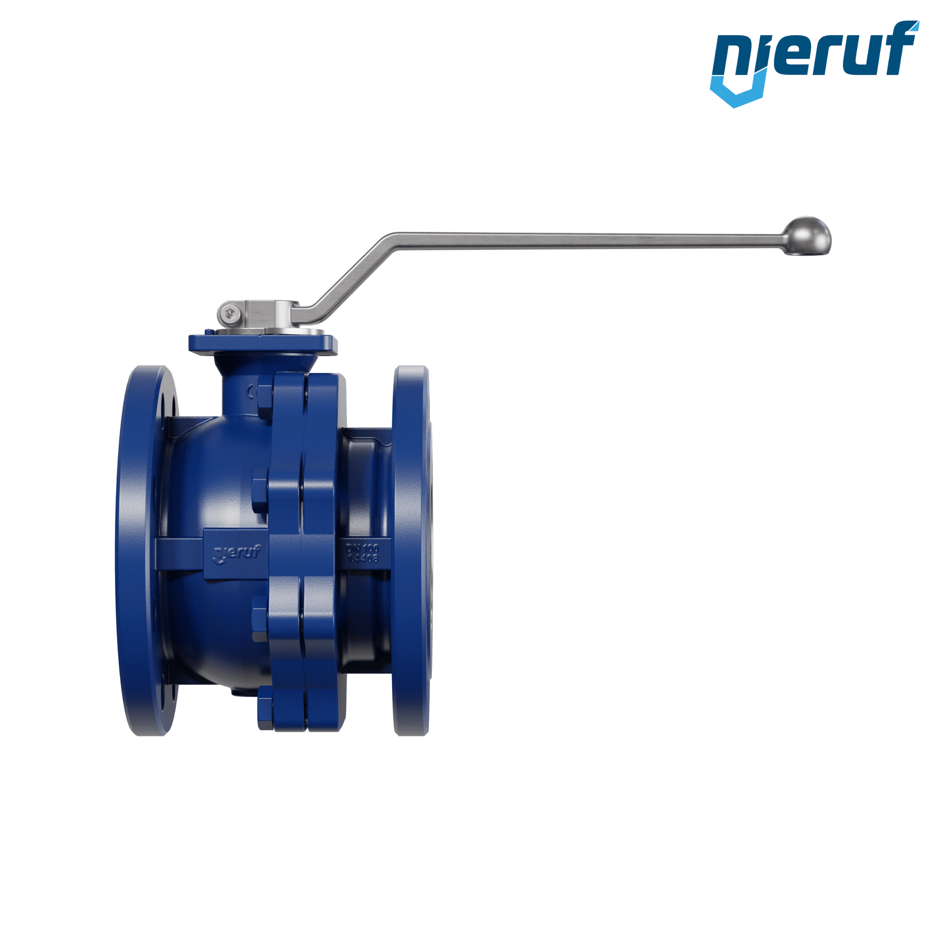 This high quality ball valve is made of cast steel and has a blow-out proof stem with graphite seal and is suitable for gaseous media such as steam. The body is two-piece with mounting flange according to DIN ISO 5211 and lever handle made of galvanized steel.