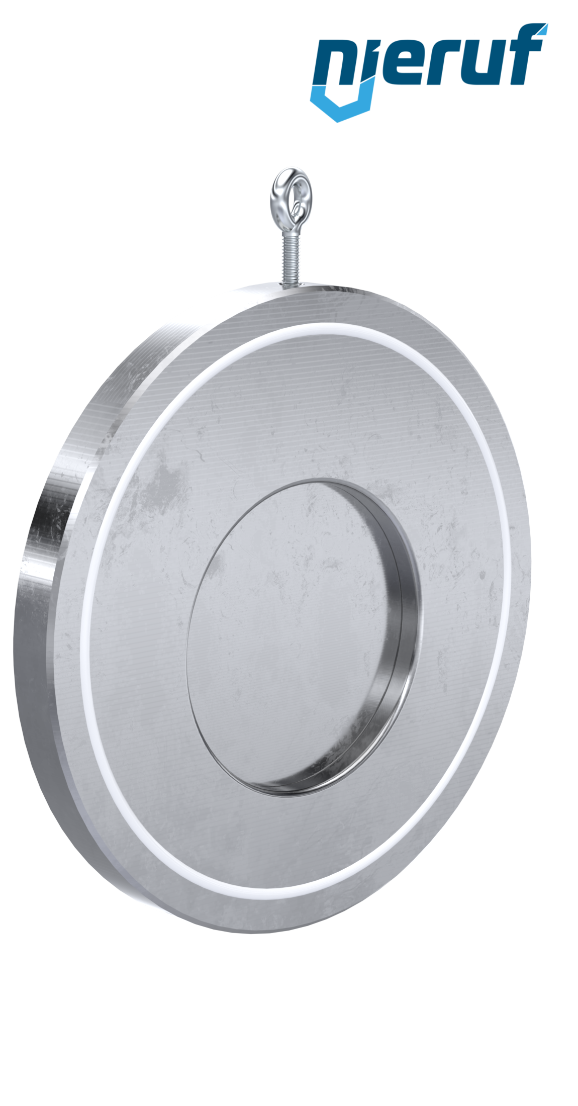 swing check valve DN125 PN 10/16 DIN EN 1092-1 Form B made of stainless steel A351 CF8M seal PTFE for liquid and gaseous media