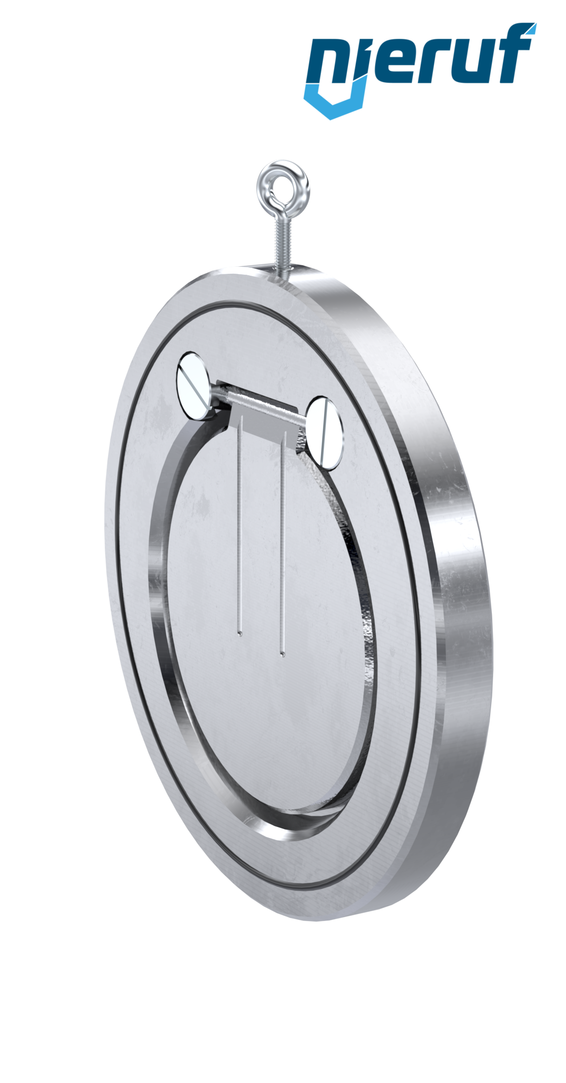swing check valve DN150 PN 10/16 DIN EN 1092-1 Form B made of stainless steel A351 CF8M seal FKM (Viton) for liquid and gaseous media