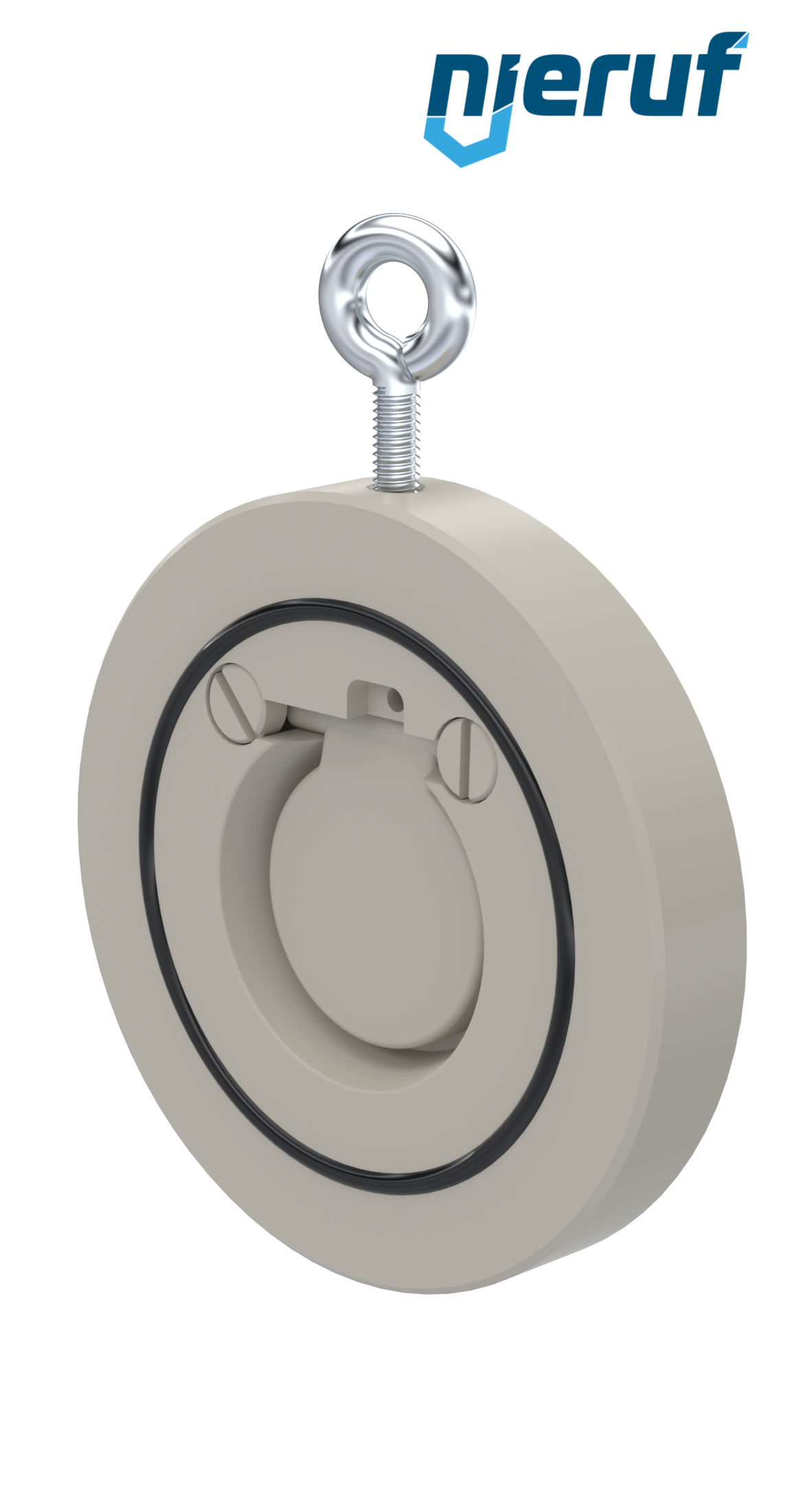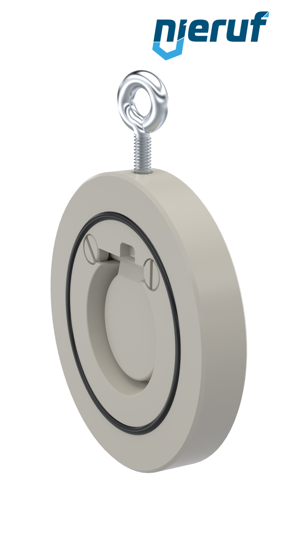 swing check valve DN40 PN 10/16 DIN EN 1092-1 Form B plastic PP-H seal FKM (Viton) for liquid and gaseous media