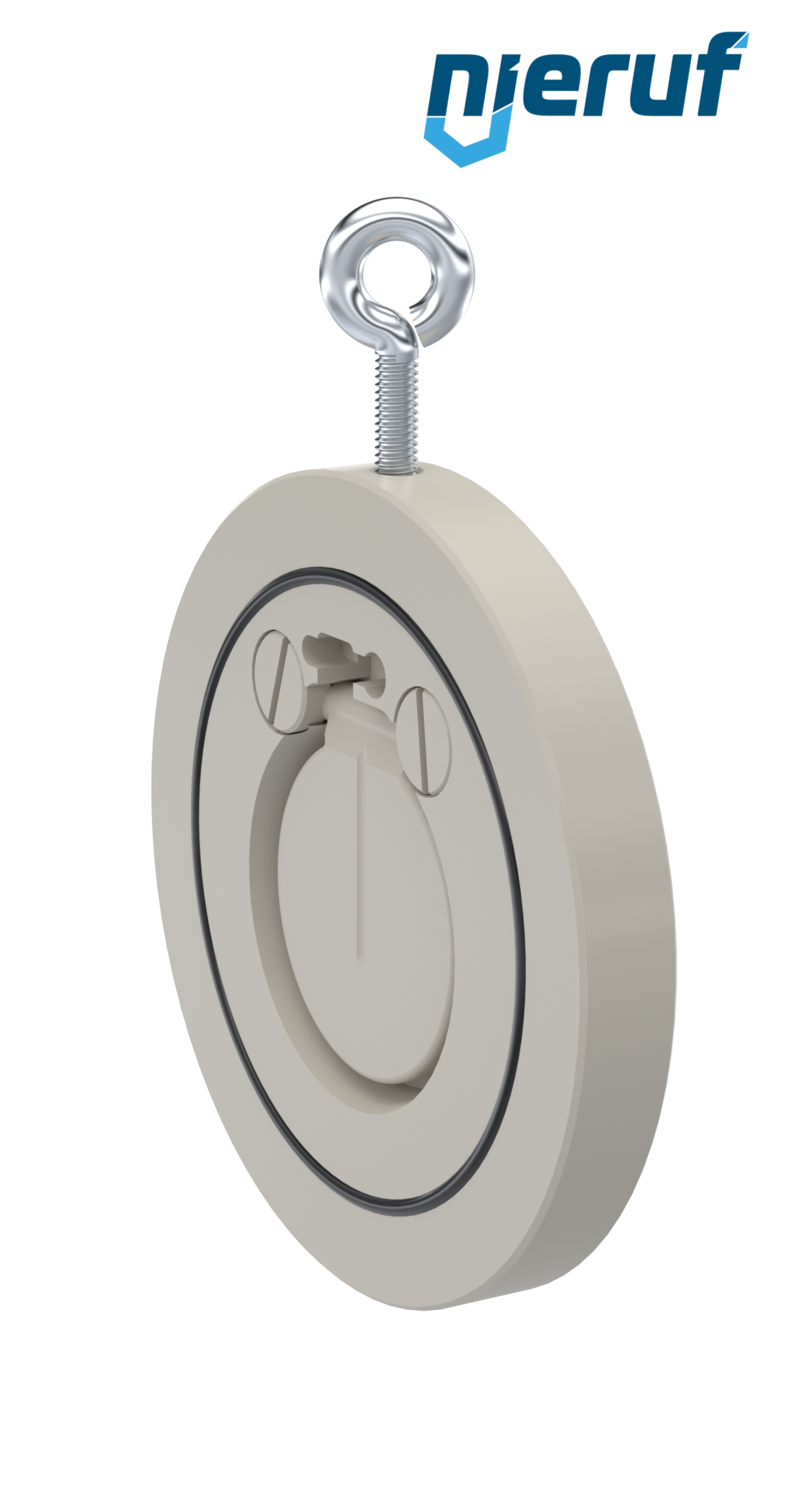 swing check valve DN50 PN 10/16 DIN EN 1092-1 Form B plastic PP-H seal FKM (Viton) for liquid and gaseous media