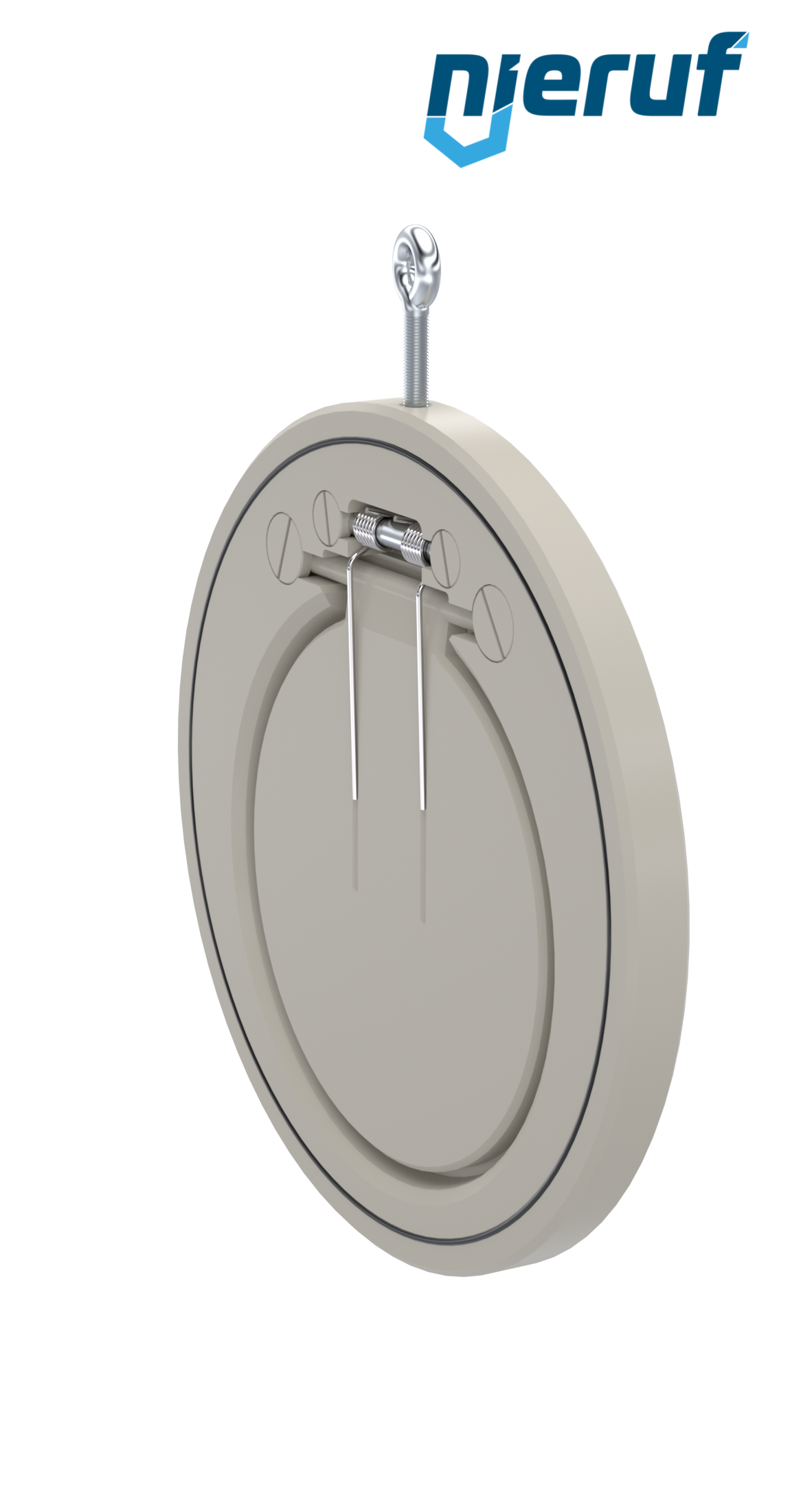 swing check valve with spring DN200 PN 10/16 DIN EN 1092-1 Form B plastic PP-H seal EPDM for liquid and gaseous media