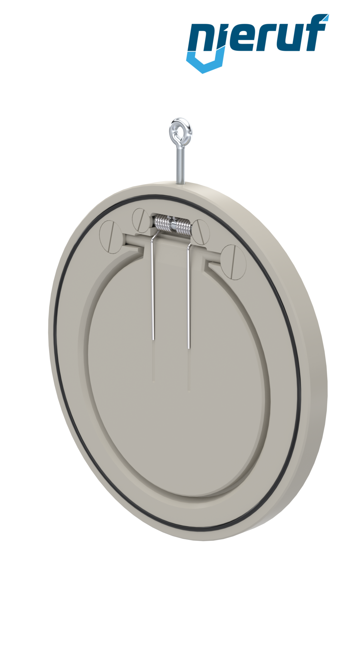 swing check valve with spring DN250 PN 10/16 DIN EN 1092-1 Form B plastic PP-H seal EPDM for liquid and gaseous media