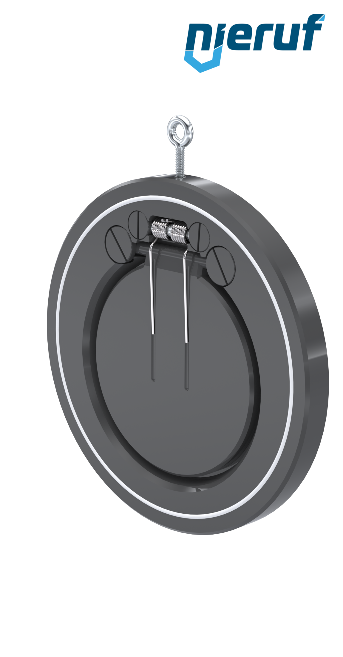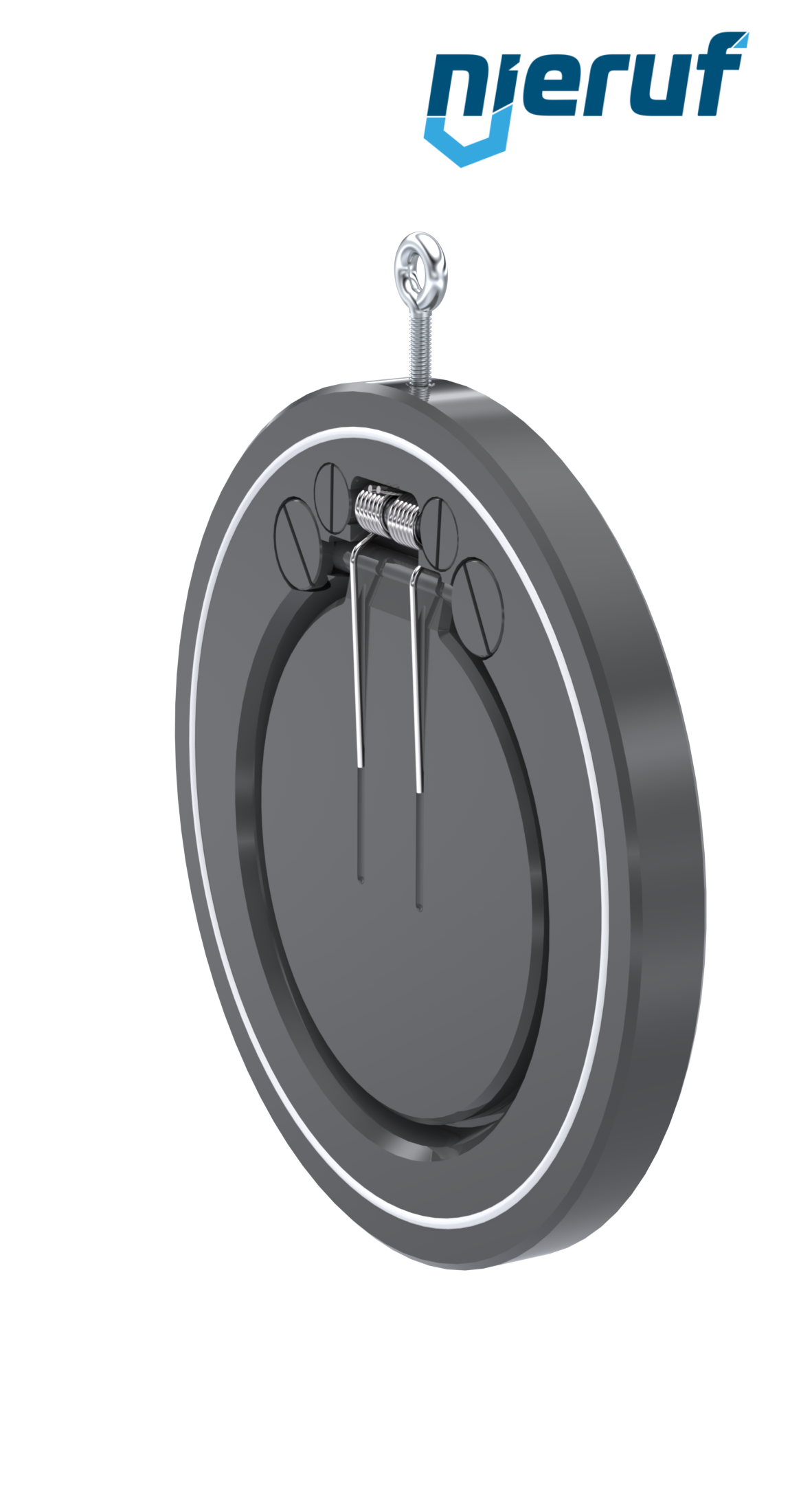swing check valve with spring DN150 PN 10/16 DIN EN 1092-1 Form B plastic PVC-U seal PTFE for liquid and gaseous media