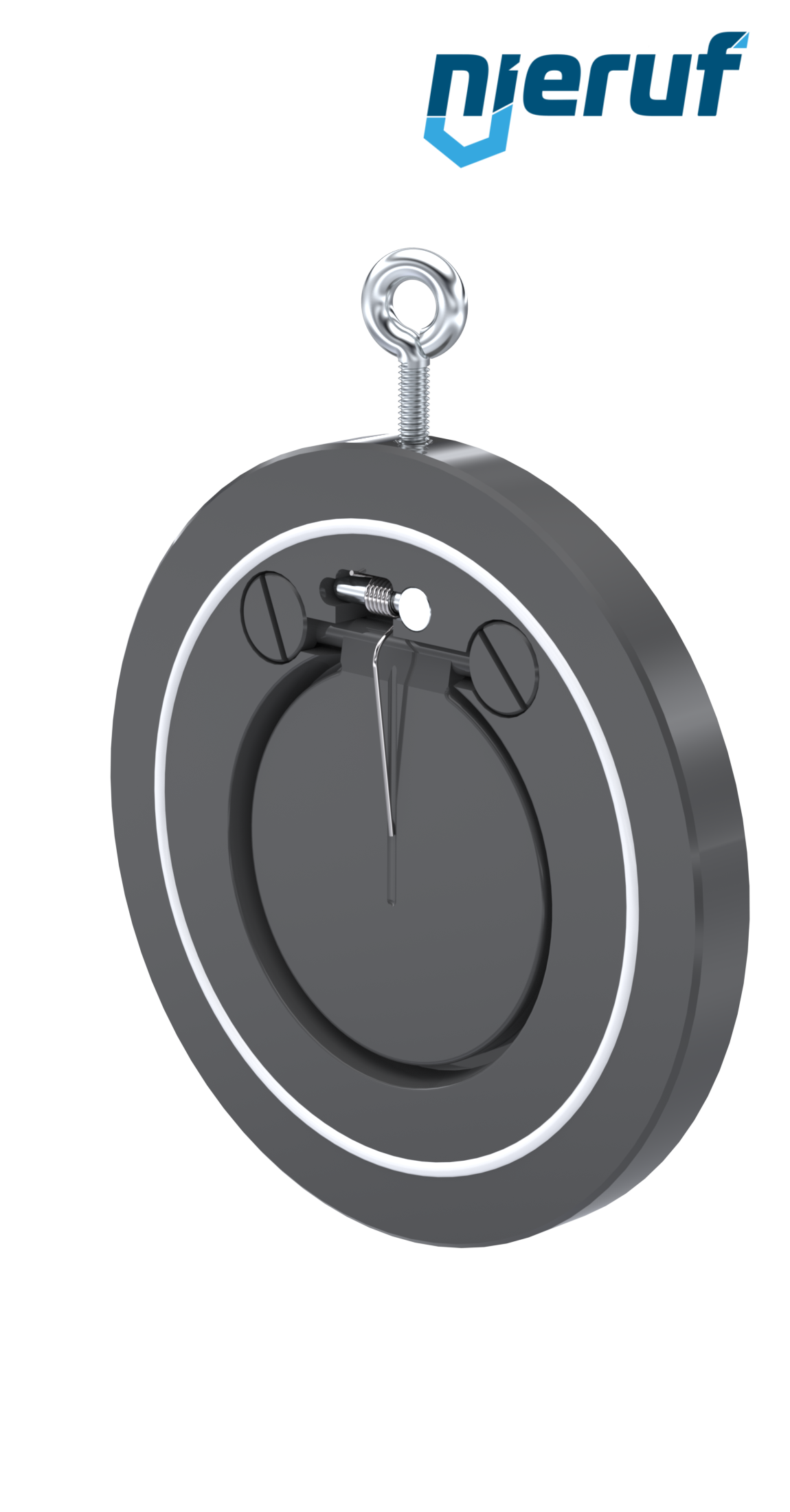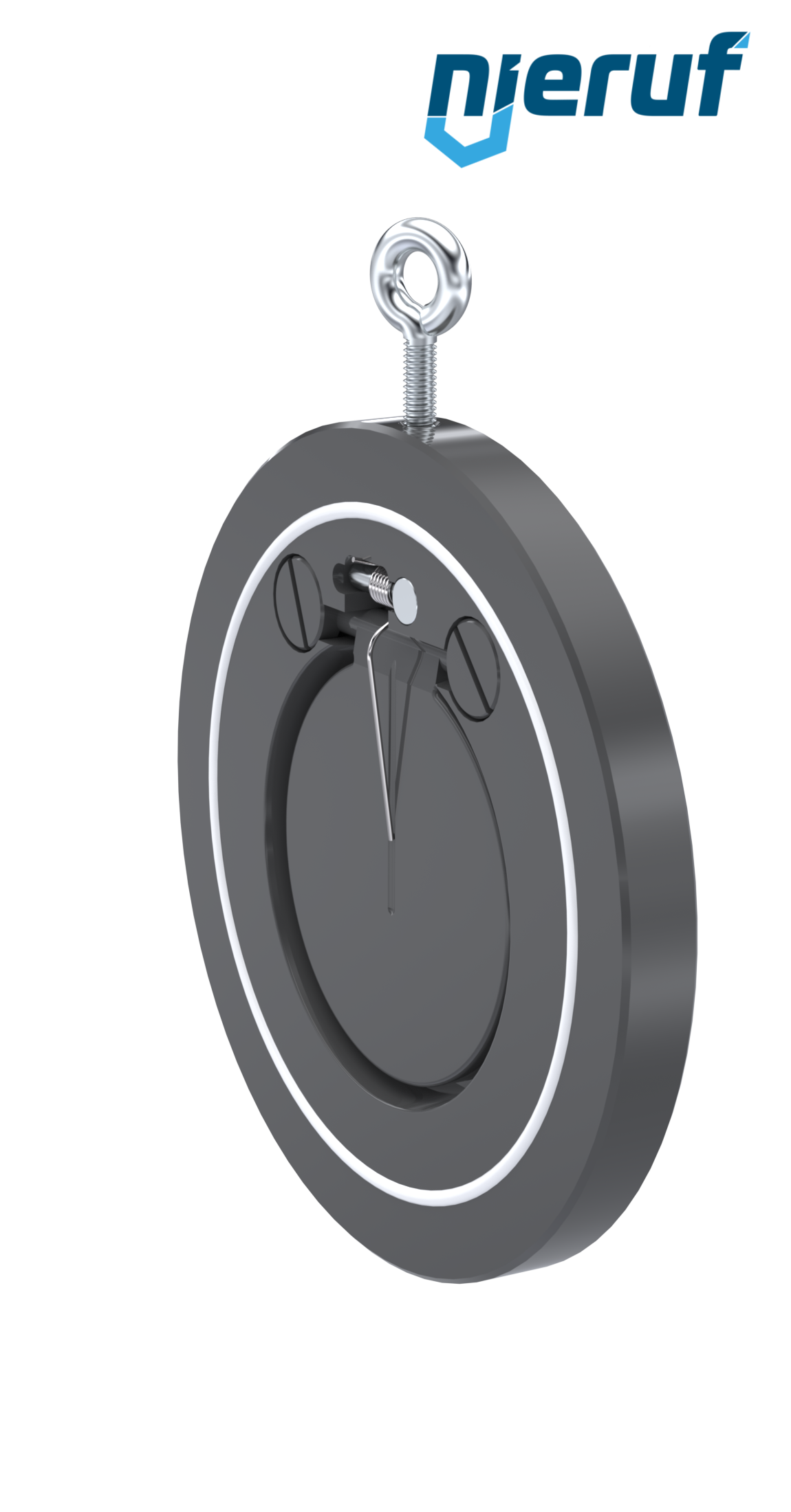swing check valve with spring DN80 PN 10/16 DIN EN 1092-1 Form B plastic PVC-U seal PTFE for liquid and gaseous media