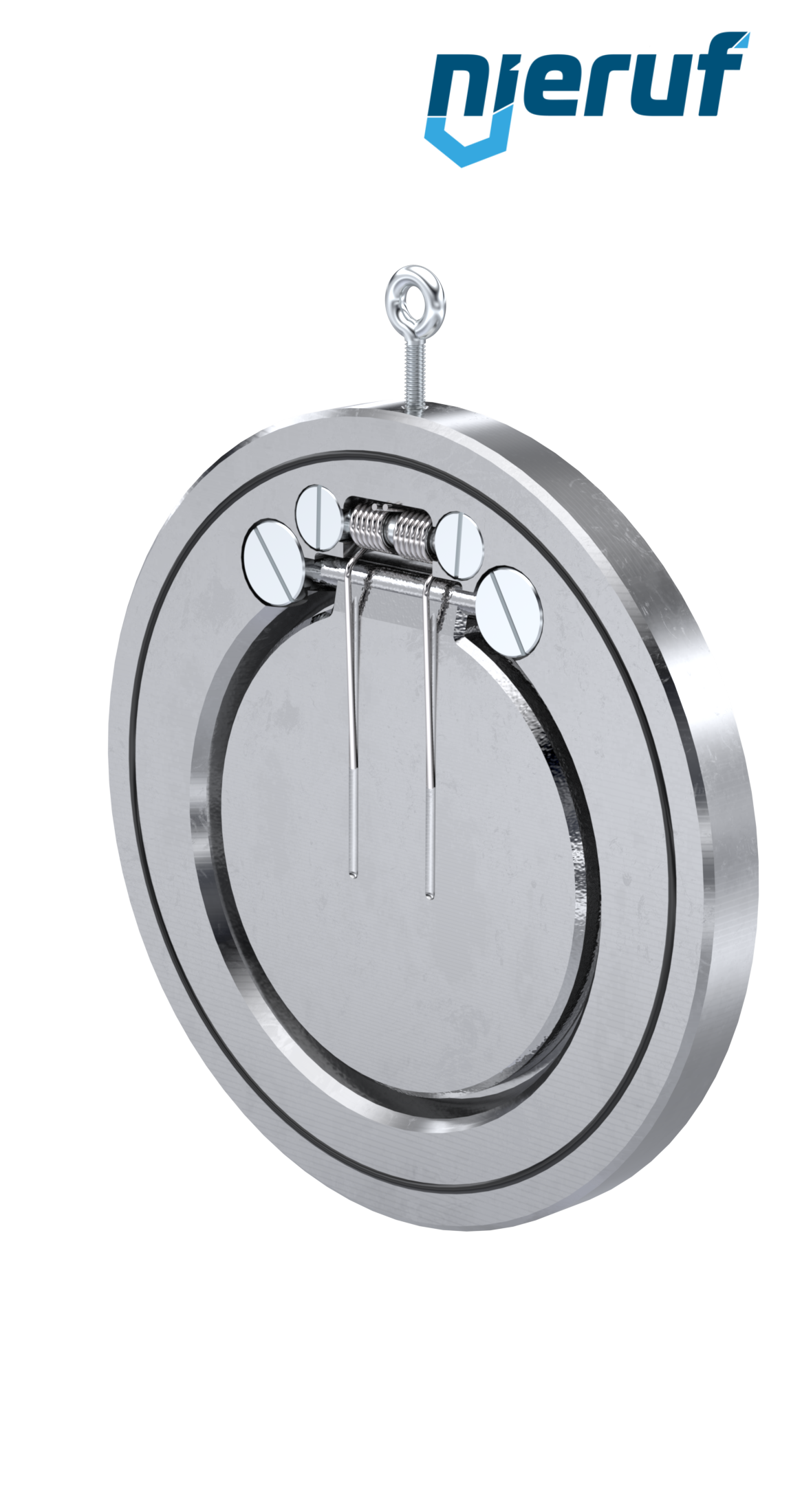 swing check valve with spring DN150 PN 10/16 DIN EN 1092-1 Form B made of stainless steel A351 CF8M seal FKM (Viton)