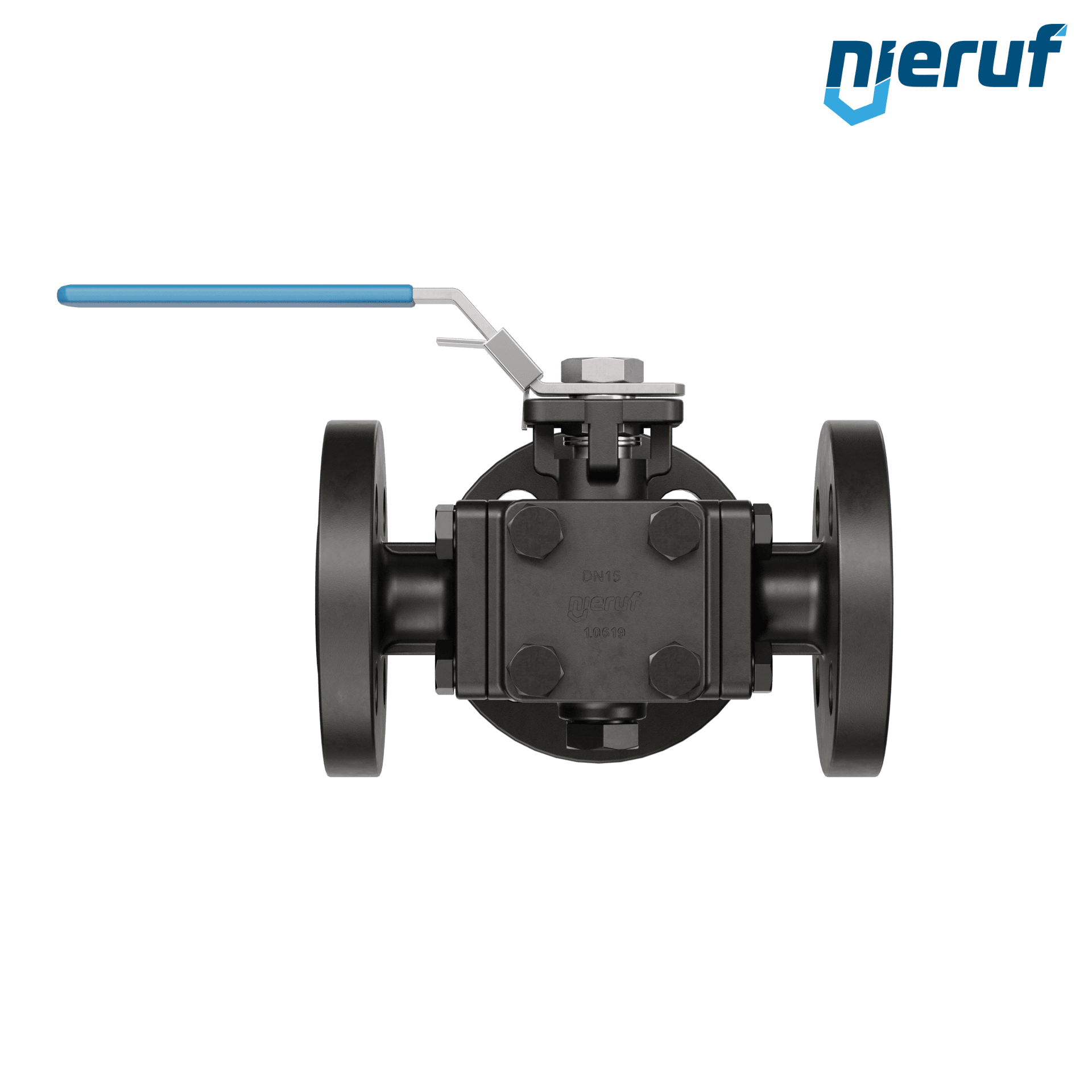 Three-way flange ball valve DN15 FK08 T drilling carbon steel 1.0619