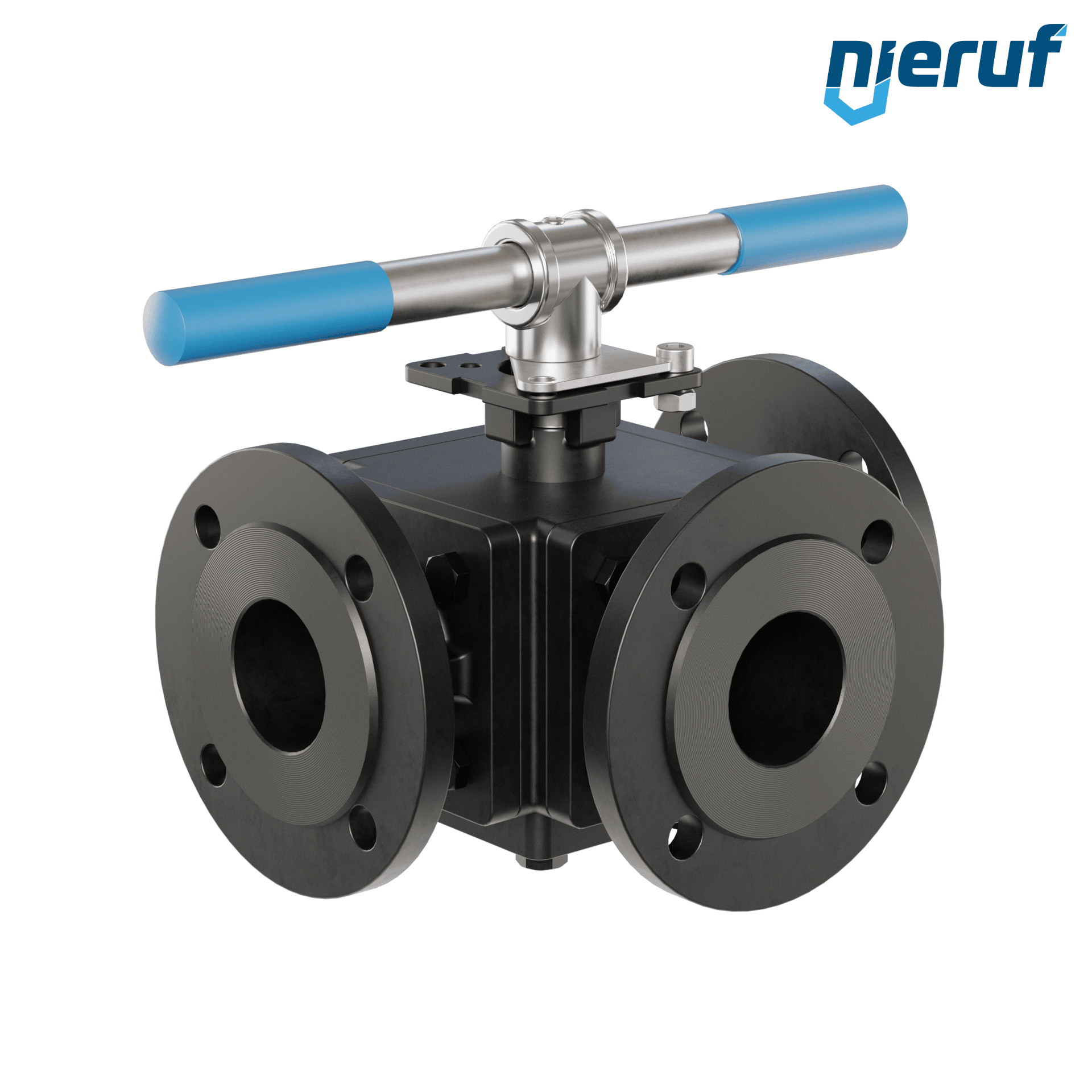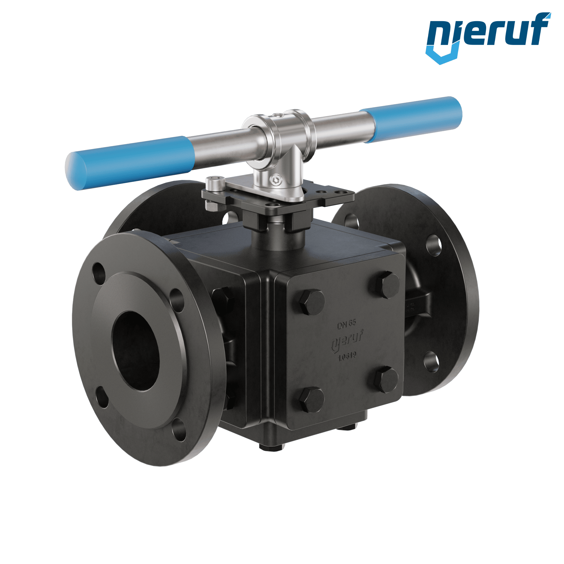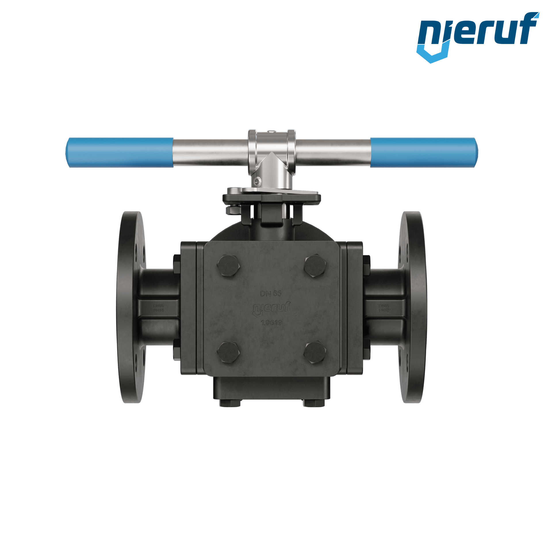 Three-way flange ball valve DN65 FK08 L Drilling carbon steel 1.0619